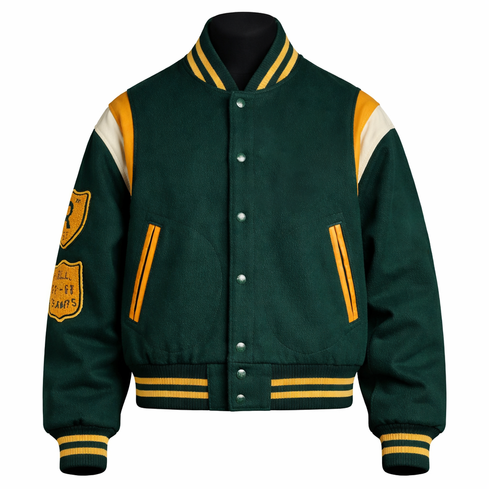 Men's Trendy Cross-border Baseball Suit Jacket Coat Brand Letter Embroidered Spring Autumn Custom Green Yellow Varsity Jacket