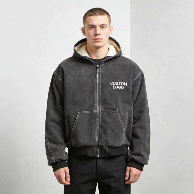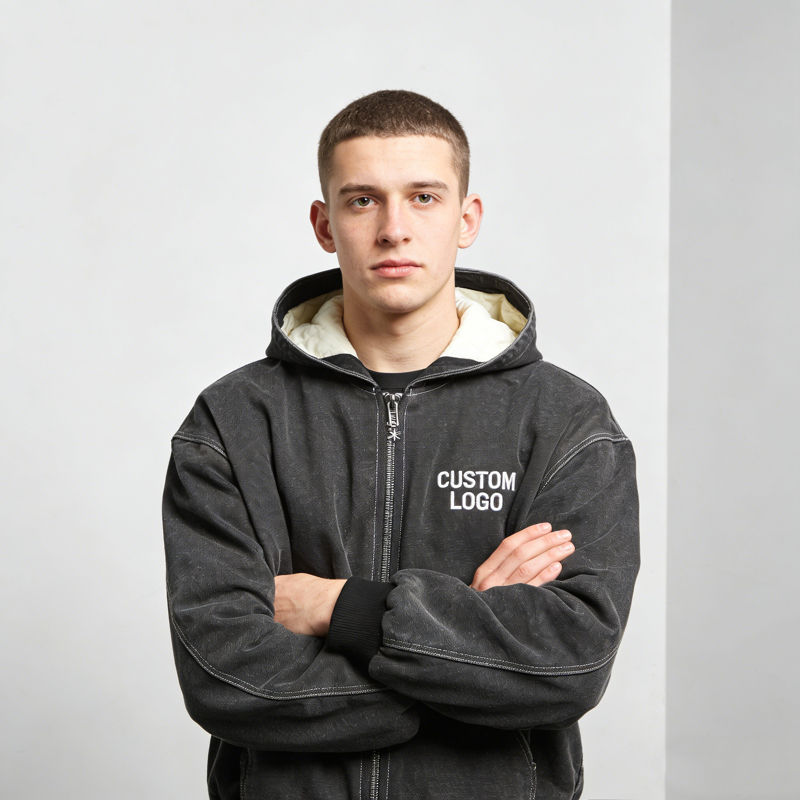 เสื้อฮู้ดผู้ชายผ้ายีนส์ฟอกสีคุณภาพพรีเมียม