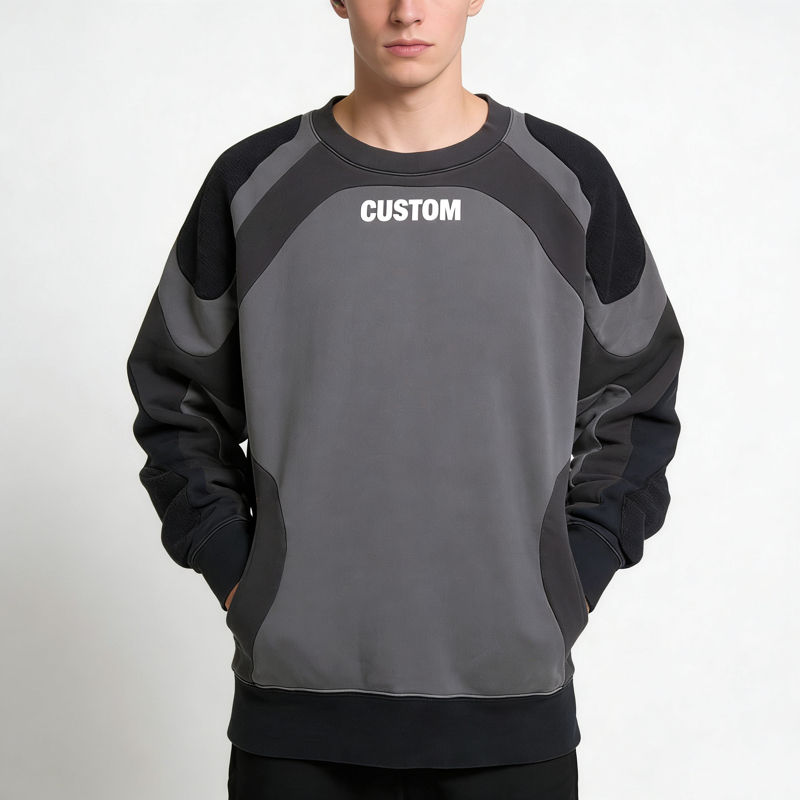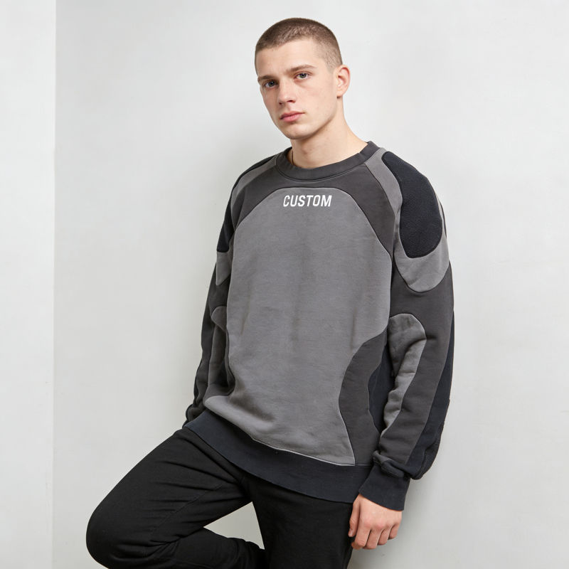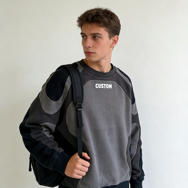 เสื้อสเวตเชิ้ตผู้ชายแฟชั่นสีเทาดำ ผ้าเนื้อนุ่ม คอวี ทรงโอเวอร์ไซส์ พิมพ์ลายตัวอักษรตามสั่ง สไตล์ลำลองแนวสตรีทแวร์