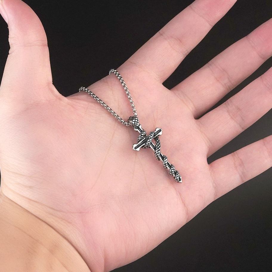 สร้อยคอจี้รูปงูสไตล์ฮิปฮอปสำหรับผู้ชาย ดีไซน์ทันสมัย โดดเด่น ไม่ซ้ำใคร ขนาดใหญ่ พร้อมจี้รูปกางเขน อุปกรณ์เสริมอเนกประสงค์
