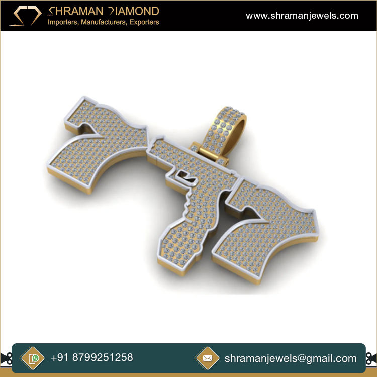 สร้อยคอเพชรสำหรับผู้ชายทำจากเงิน925เย็นทันสมัยประดับด้วยเพชรเพชรโมอิสซาไนต์ทรงเสน่ห์ของปืนพกแนวแฟชั่นจำนวนนำโชคของทหาร