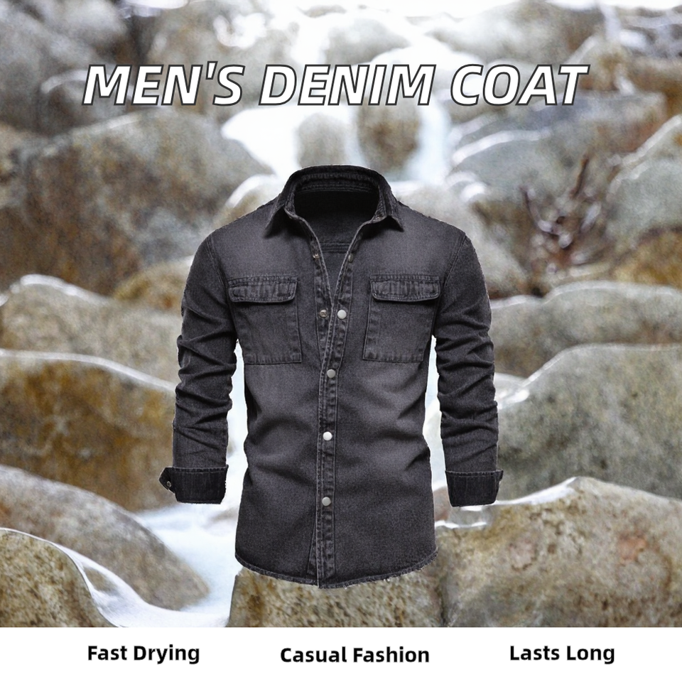 แจ็คเก็ตยีนส์แขนยาวสไตล์วินเทจสำหรับผู้ชาย - ผ้าฝ้าย 100% แต่งกระดุม ระบายอากาศได้ดีและกันลม เหมาะสำหรับฤดูใบไม้ผลิ/ฤดูใบไม้ร่วง/ฤดูหนาว
