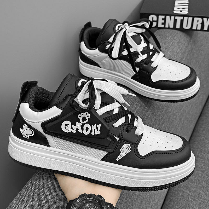 รองเท้าผ้าใบสำหรับผู้ชายสีขาวข้อต่ำทันสมัยรองเท้ากีฬาบาสเก็ตบอลสไตล์ใหม่สไตล์ฮ่องกงระบายอากาศได้ดีและใส่สบาย