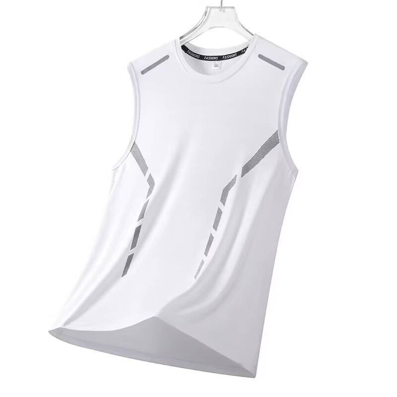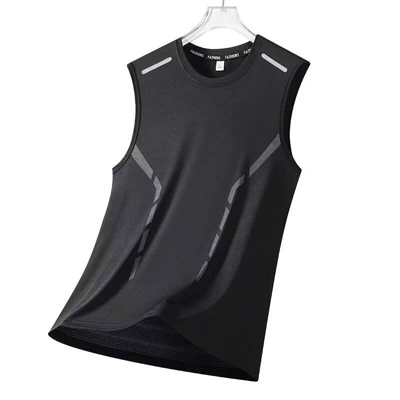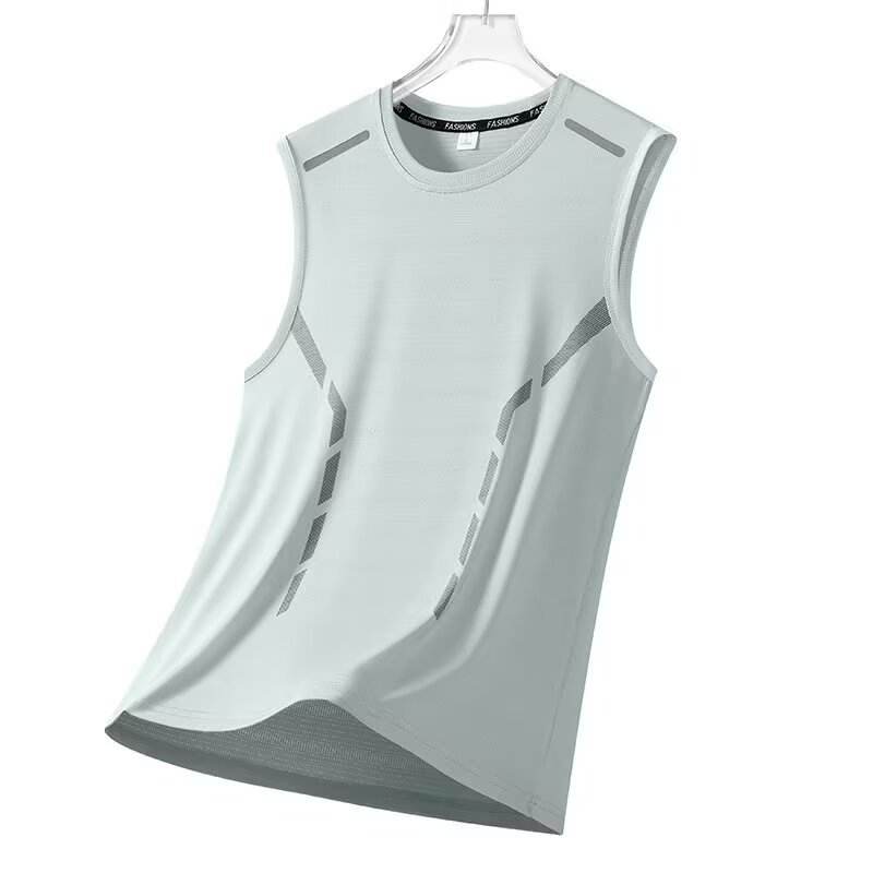 เสื้อลำลองแขนกุดคอกลมสำหรับผู้ชายทันสมัยระบายอากาศได้ดีบางกีฬาแห้งเร็วพร้อมไหล่กว้างทำจากผ้าไหมถัก