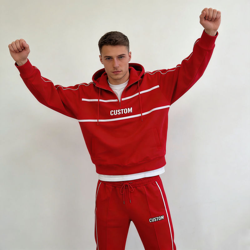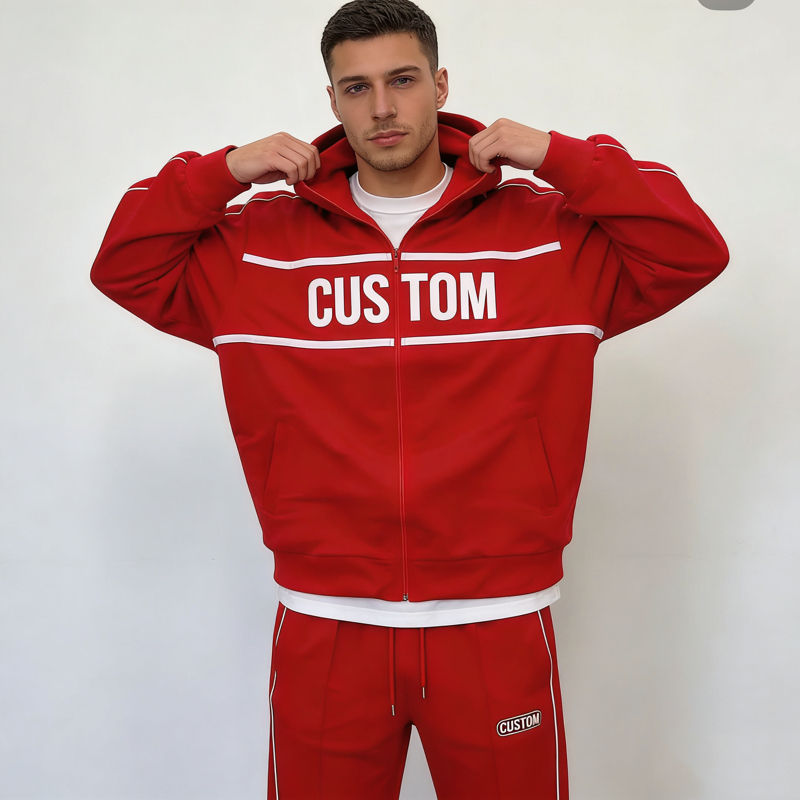 เสื้อฮู้ดดี้สตรีทแวร์ลำลองสำหรับผู้ชาย ลายทางสีขาว พิมพ์ตัวอักษรสีแดงตามสั่ง ทรงโอเวอร์ไซส์ ซิปหน้า ผ้าคอตตอนผสม สไตล์สตรีทแวร์สำหรับใส่ทุกวัน