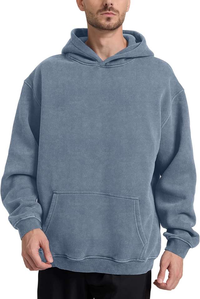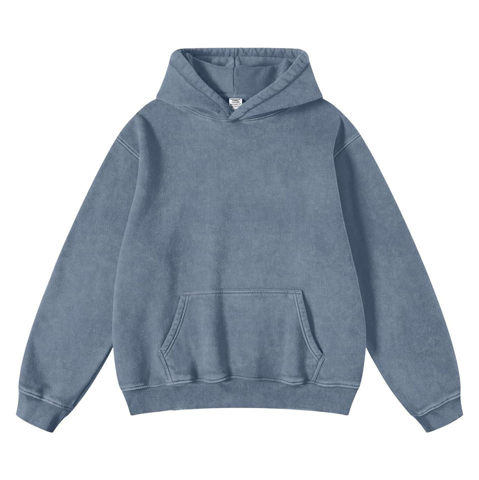 เสื้อฮู้ดผ้าคอตตอนแบบสวมหัวสำหรับผู้ชายเสื้อวอร์มผ้าฟลีซย้อมสีธรรมดาทรงโอเวอร์ไซส์สำหรับฤดูหนาว