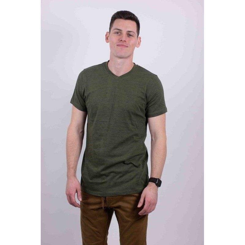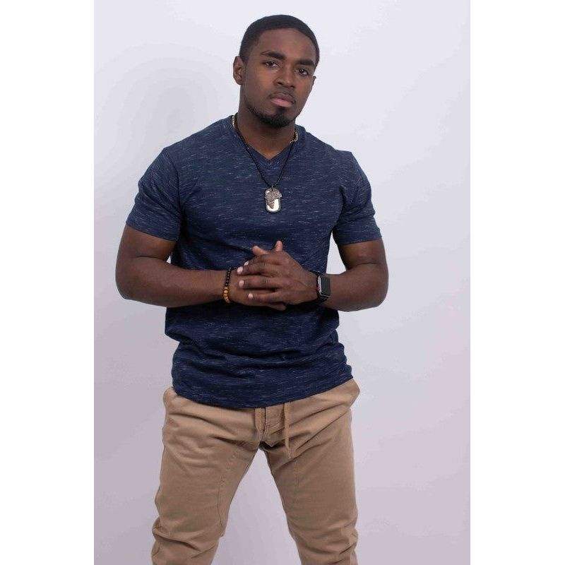 เสื้อยืดคอวีผู้ชายแบบผสมผสานสามเนื้อผ้า