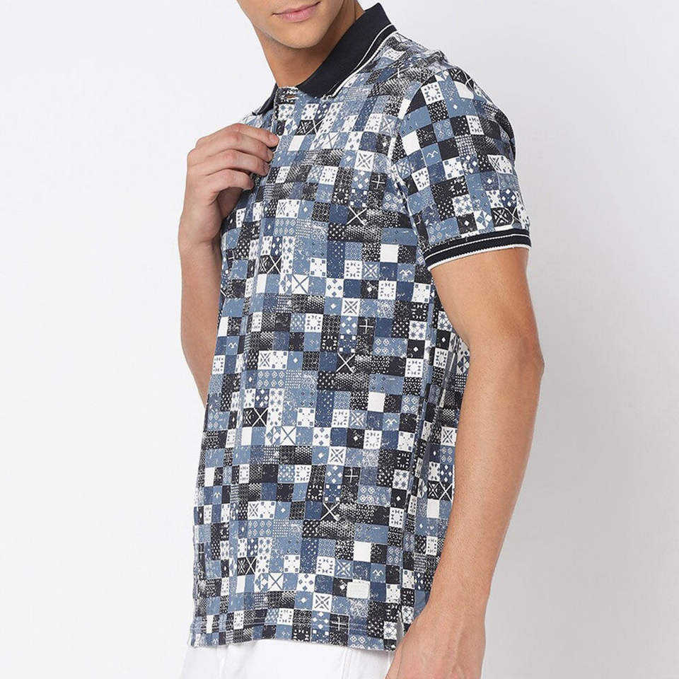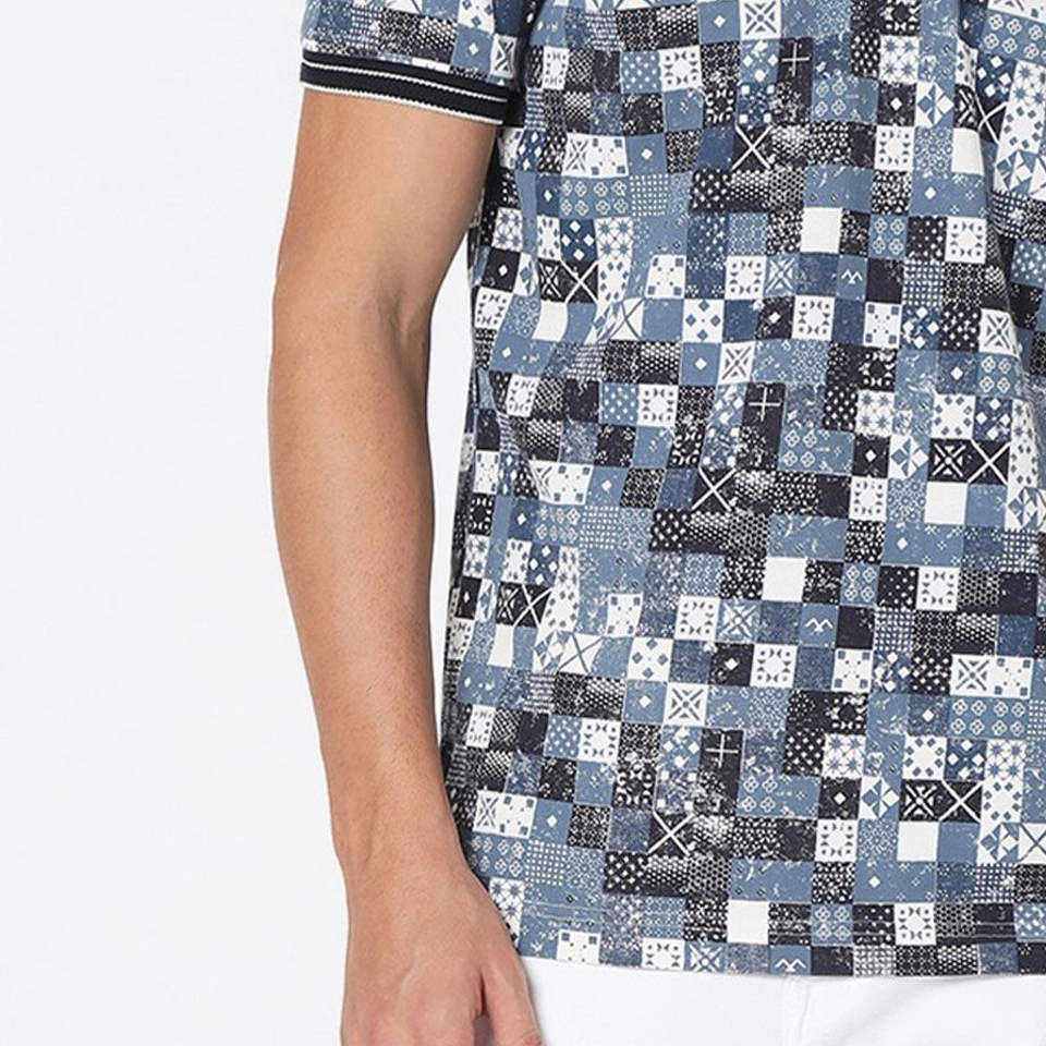 เสื้อโปโลกอล์ฟผู้ชายลายดอกไม้เขตร้อนและวิวชายฝั่ง รุ่นปี 2026 ระบายเหงื่อได้ดี ทรงพอดีตัว สีเขียวและน้ำเงิน