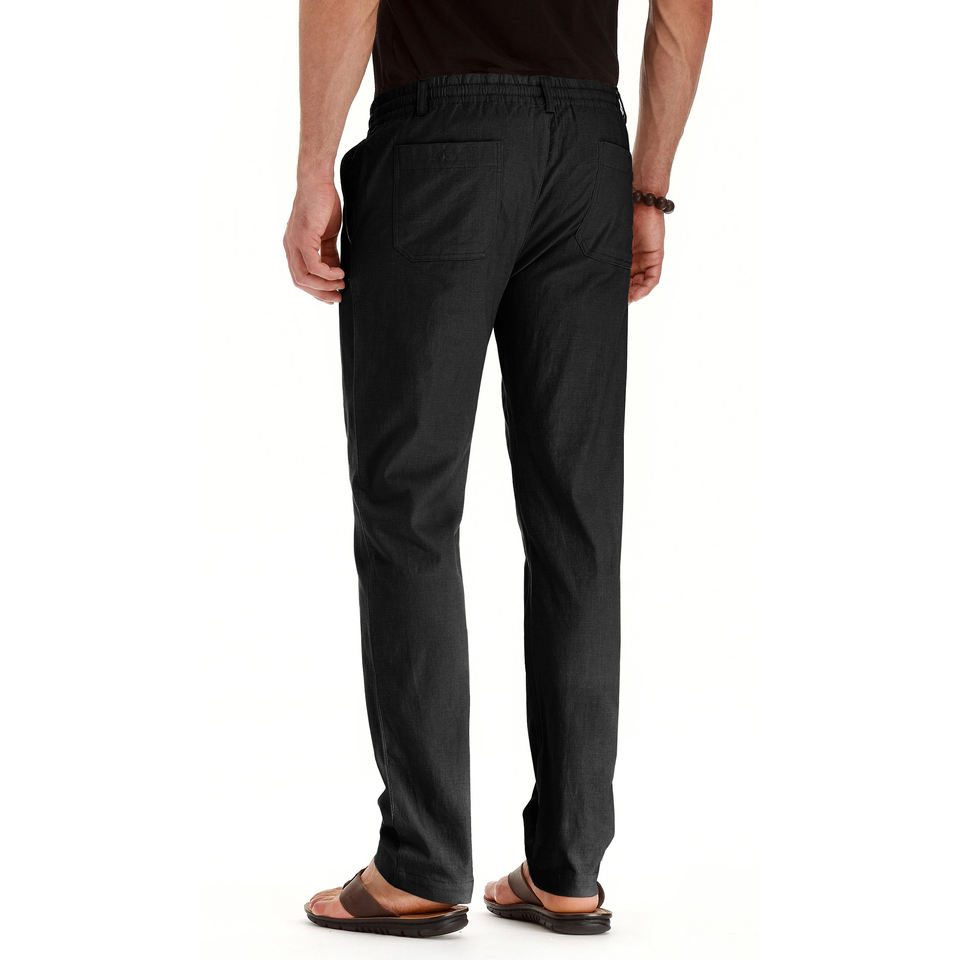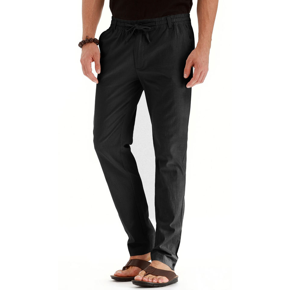 กางเกงเอวสูงสำหรับผู้ชายกางเกงผ้าแคนวาสแบบถักมีกระเป๋าผ้าแคนวาสน้ำหนักเบาเย็บติดด้วยเทคนิคเอวยางยืด