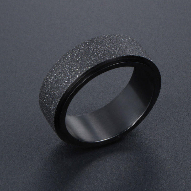 แหวนทังสเตนสำหรับผู้ชาย สีดำด้าน ดีไซน์เรขาคณิตหมุนได้ SA498