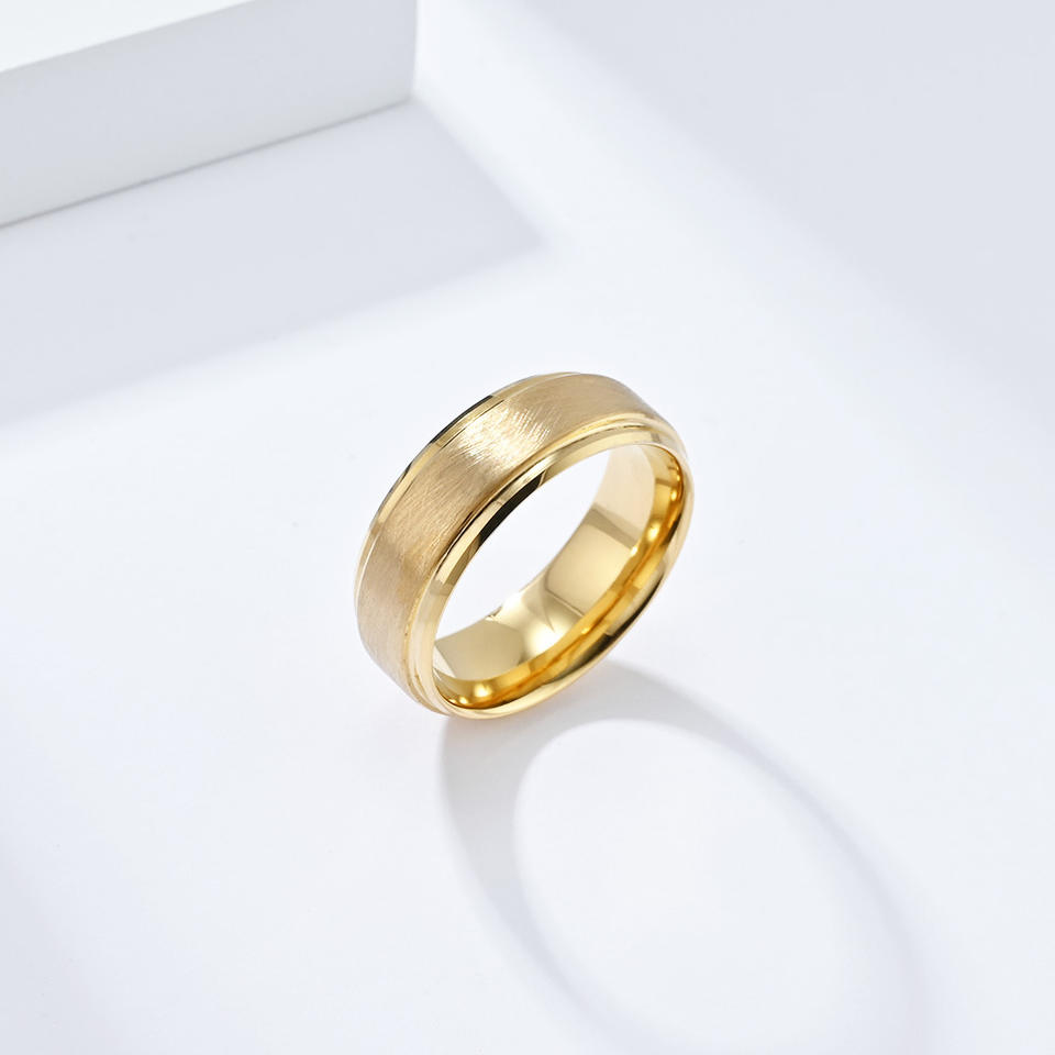 แหวนเหล็กทังสเตนผู้ชาย 8 มม. แหวนแต่งงานแบบด้านสีทองสีดำสีเงินเครื่องประดับ