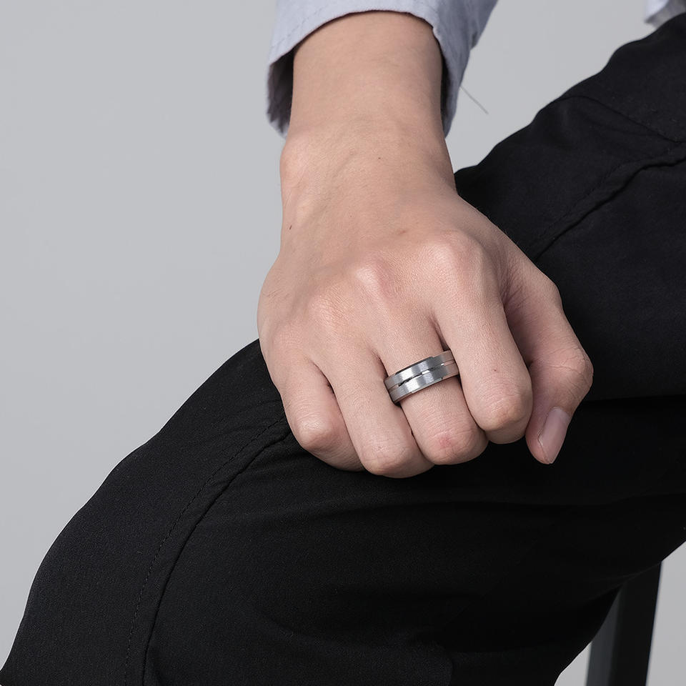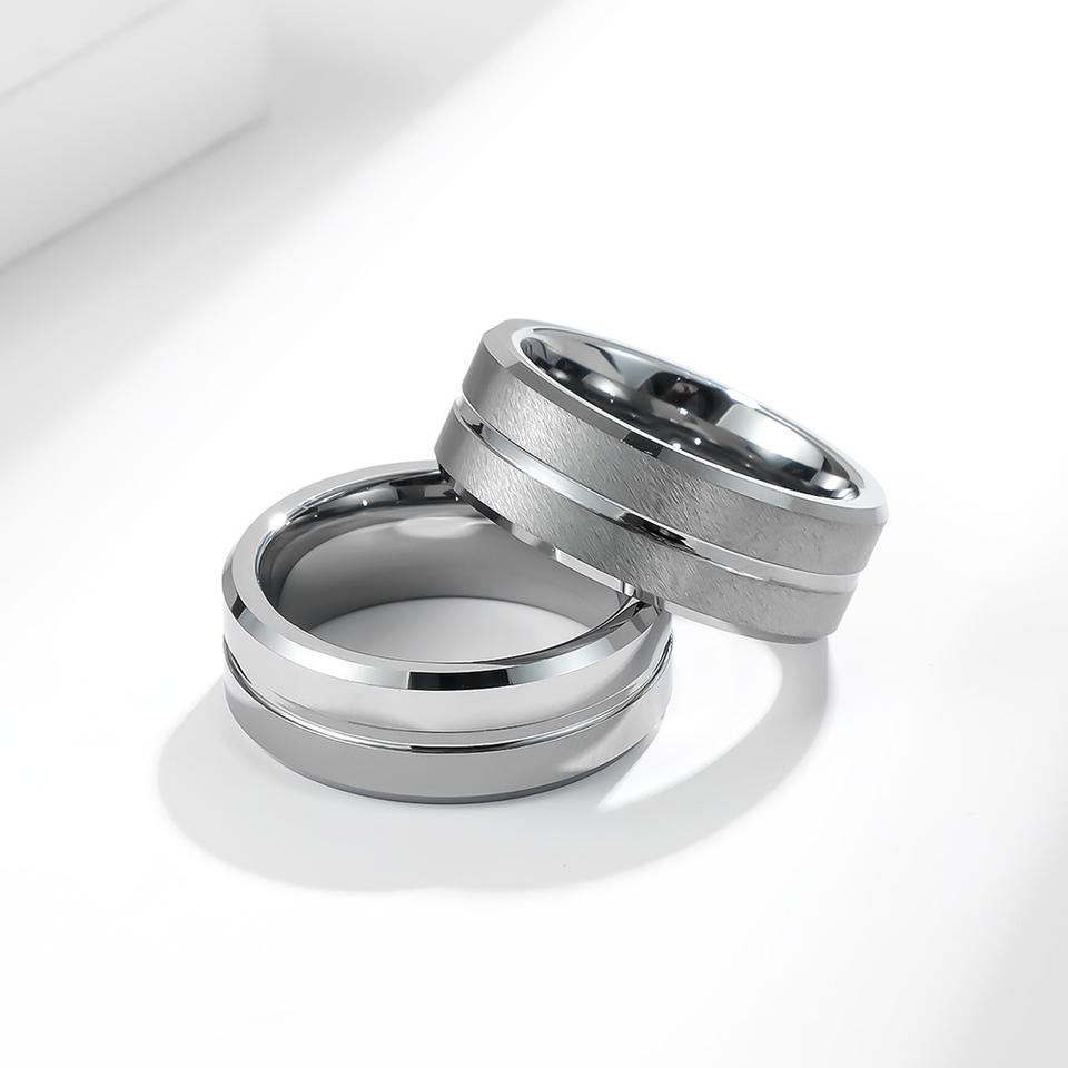 แหวนเหล็กทังสเตนสำหรับผู้ชาย ดีไซน์เรขาคณิต ทนต่อการขีดข่วน ของขวัญเครื่องประดับแฟชั่น