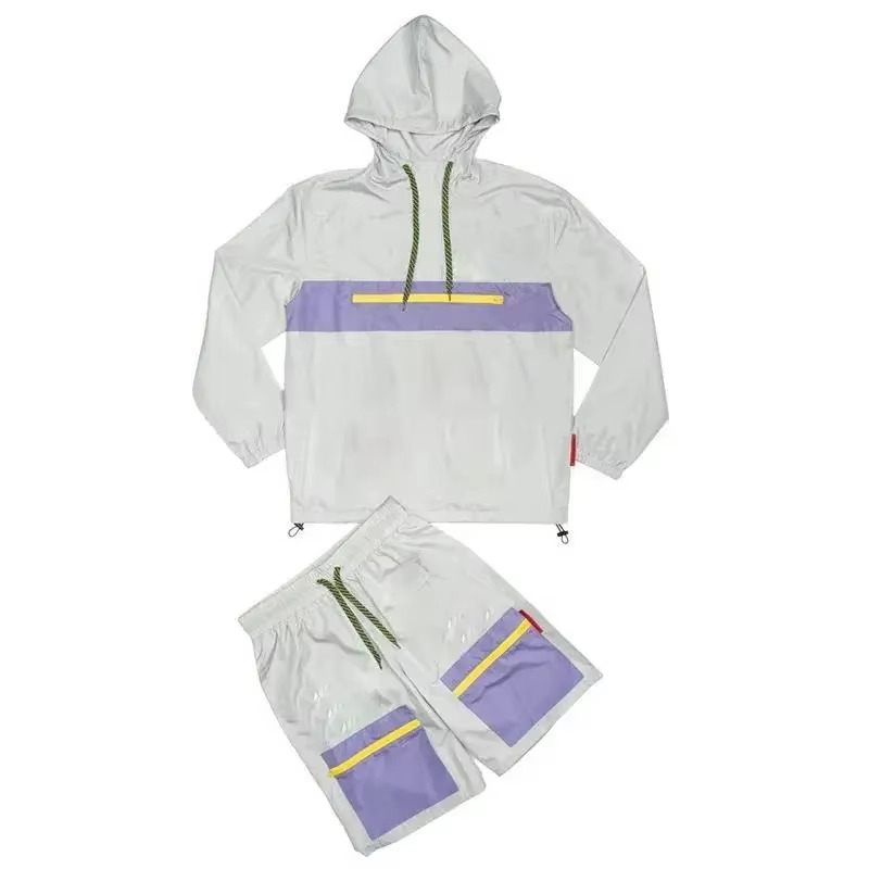 ชุดวอร์มกันลม2ชิ้นแบบลำลองสำหรับผู้ชายแจ็คเก็ตแบบมีซิปมีฮู้ดและชุดกันลมปรับแต่งได้สำหรับวิ่งจ็อกเกอร์