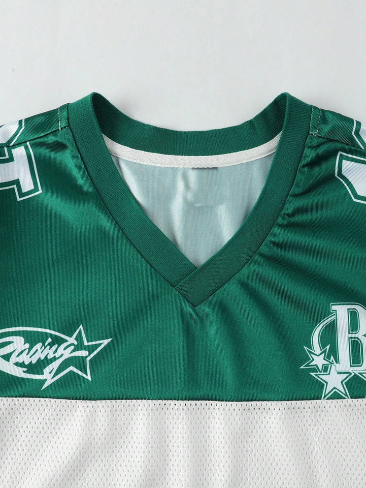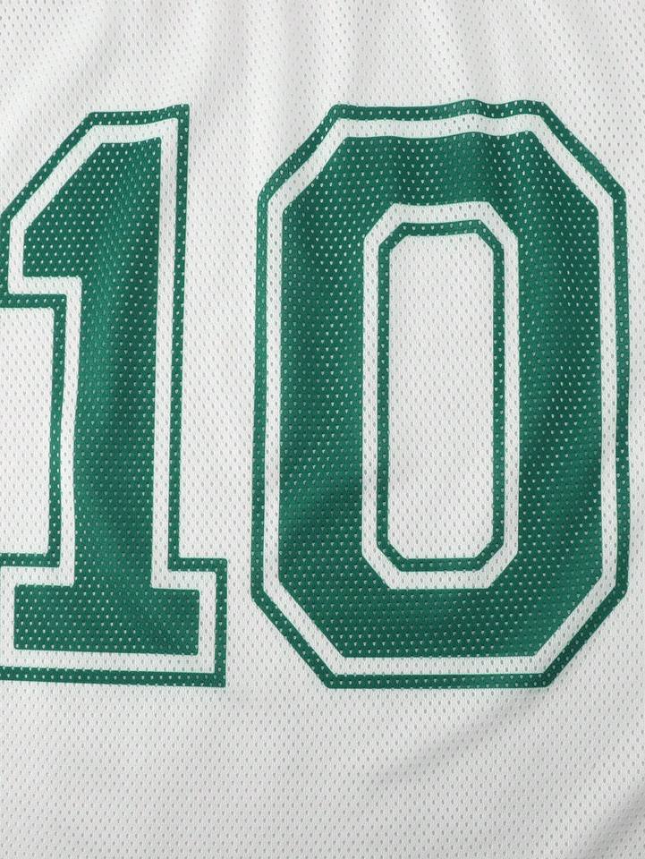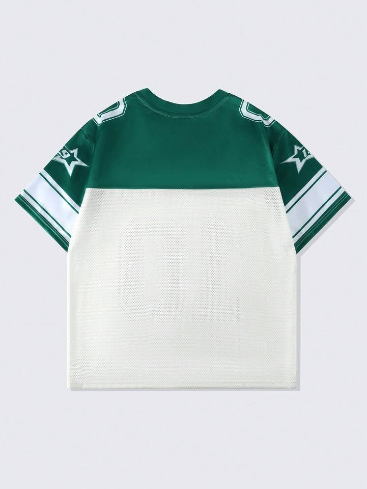 เสื้อฟุตบอลอเมริกันตาข่ายสีเขียวขาวสองสีสำหรับผู้ชาย 240gsm ชุดทีมกีฬา คอวี ผลิตแบบซับลิเมชั่นตามสั่ง ผลิตจำนวนมาก