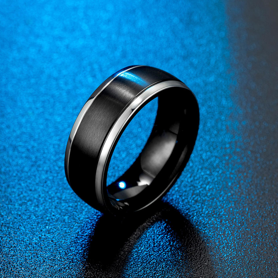 แหวนไทเทเนียมสตีลสองสีสำหรับผู้ชาย ขนาด 8 มม. ผิวขัดด้าน ชุบทองคำ สำหรับงานแต่งงาน