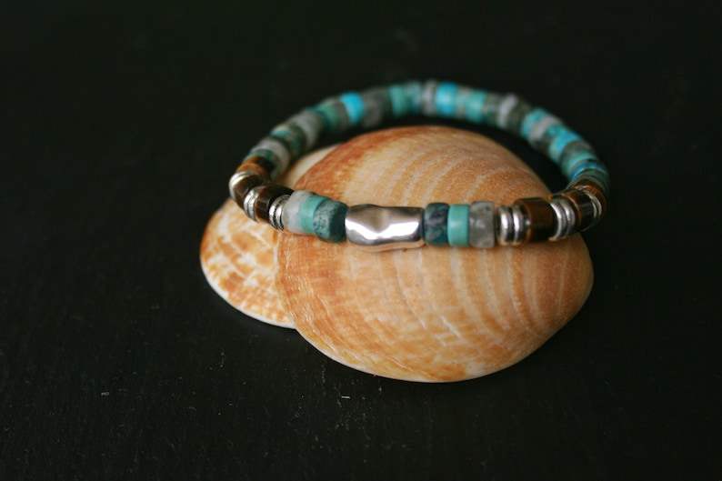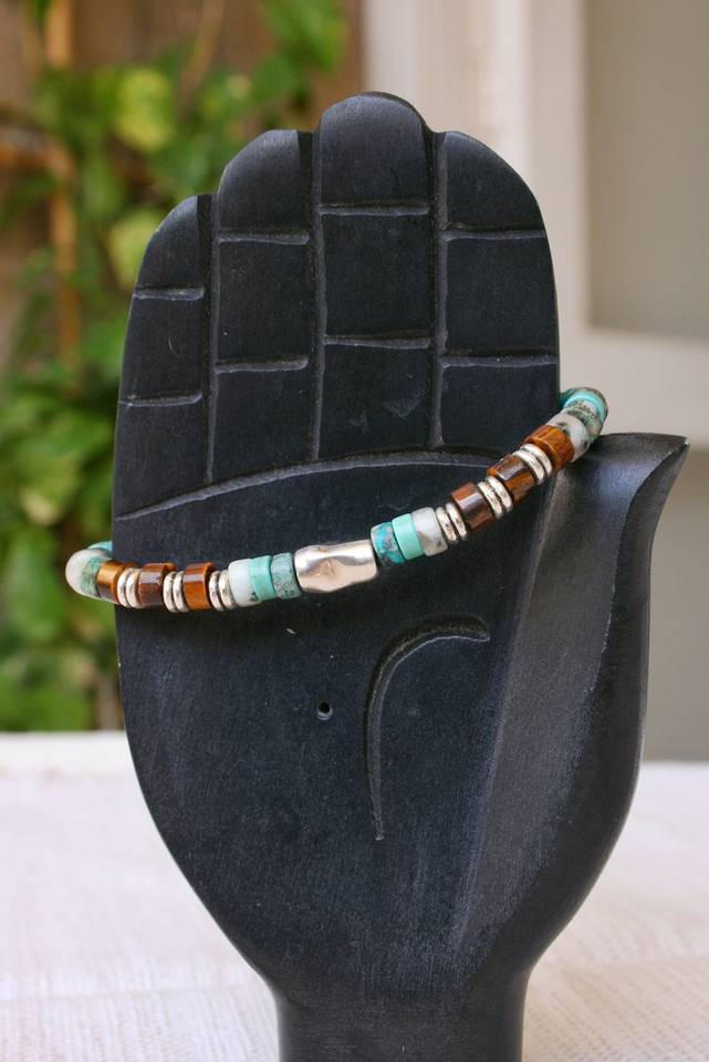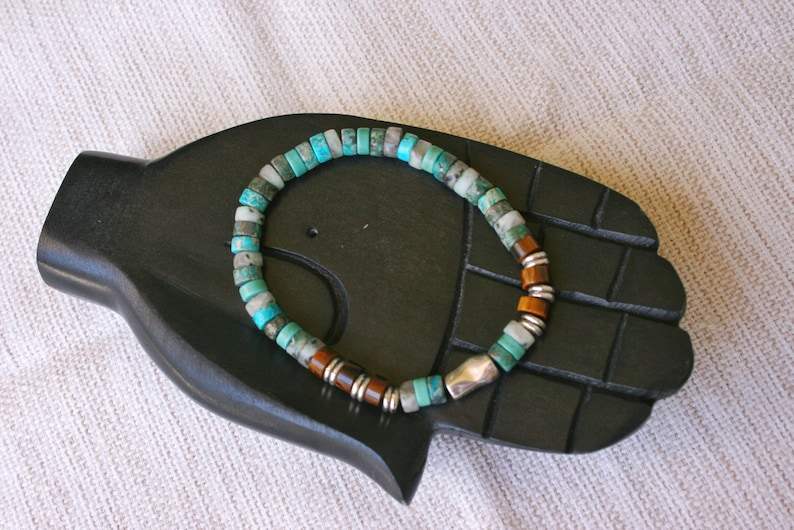 สร้อยข้อมือลูกปัดเทอร์ควอยส์สุดเท่สำหรับผู้ชายสร้อยข้อมือรักษาสีพลอยสีเขียวธรรมชาติที่ไม่เหมือนใคร