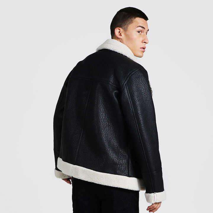 แจ็กเก็ตหนังเทียมสำหรับผู้ชาย, แจ็กเก็ตหนังขนเทียมมีซิปด้านหน้าทำให้อบอุ่นในฤดูหนาว