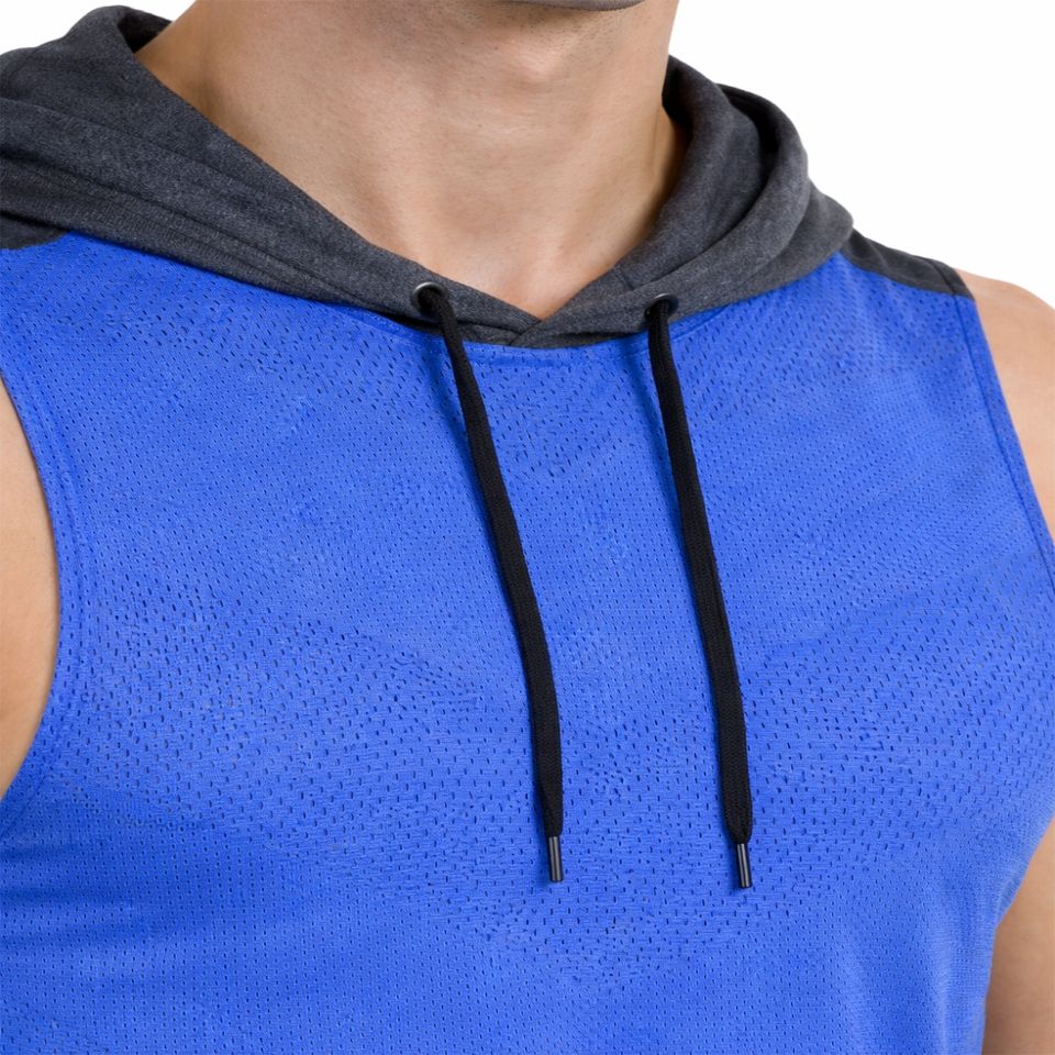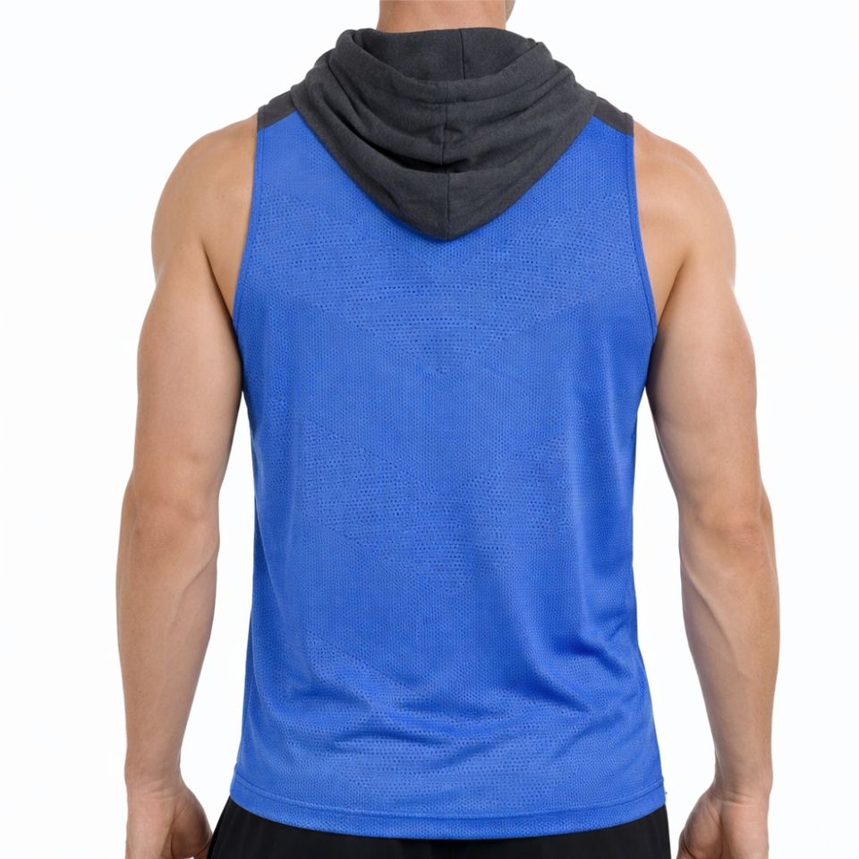 เสื้อกล้ามมีฮู้ดดีไซน์เฉพาะสำหรับผู้ชาย น้ำหนักเบา แห้งเร็ว ระบายอากาศได้ดี เป็นมิตรกับสิ่งแวดล้อม ผลิตจากผ้าสแปนเด็กซ์/คอตตอน สีพื้น คอวี เหมาะสำหรับออกกำลังกาย