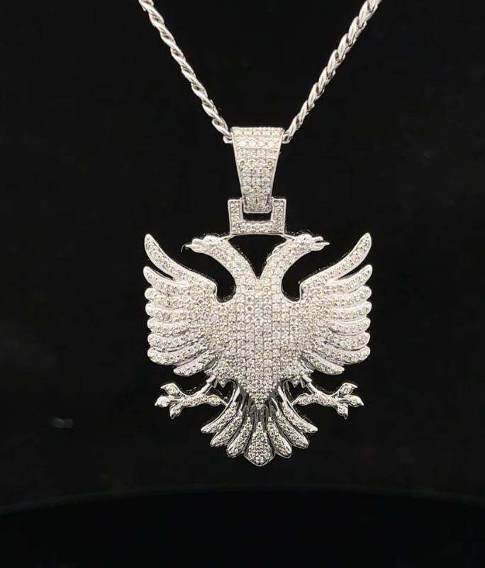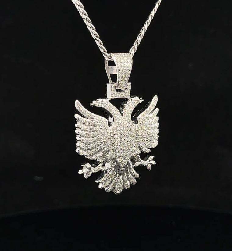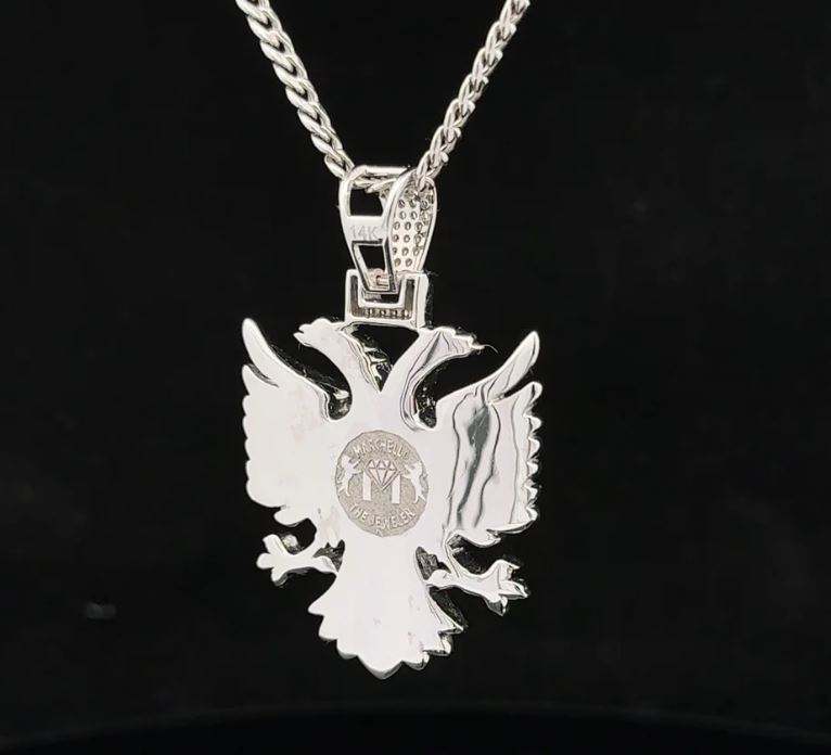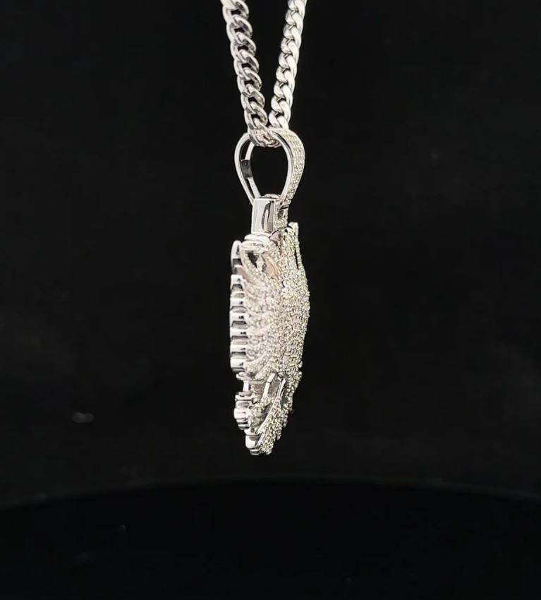 Men's Unique Design VVS1 Moissanite & 14K White Gold Eagle Pendant 10K Gold Charm Featuring Touch Diamond Hip Hop Cuban Chain