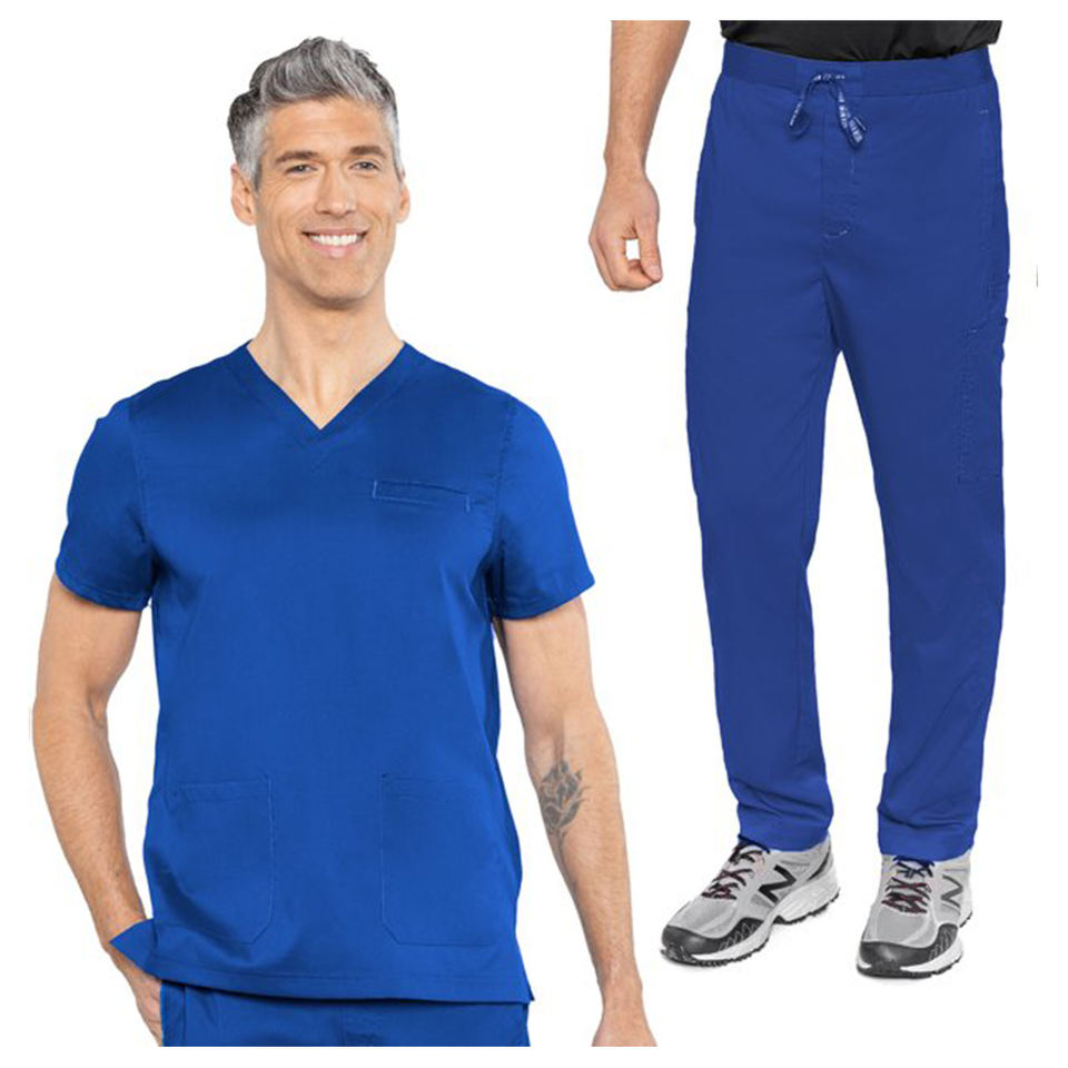 ชุดเครื่องแบบพยาบาลคอวีสำหรับผู้ชายกางเกงสครับสำหรับโรงพยาบาลผ้าสแปนเด็กซ์กางเกงจ็อกเกอร์ชุดพยาบาลและเครื่องแบบเจ้าหน้าที่ทางการแพทย์
