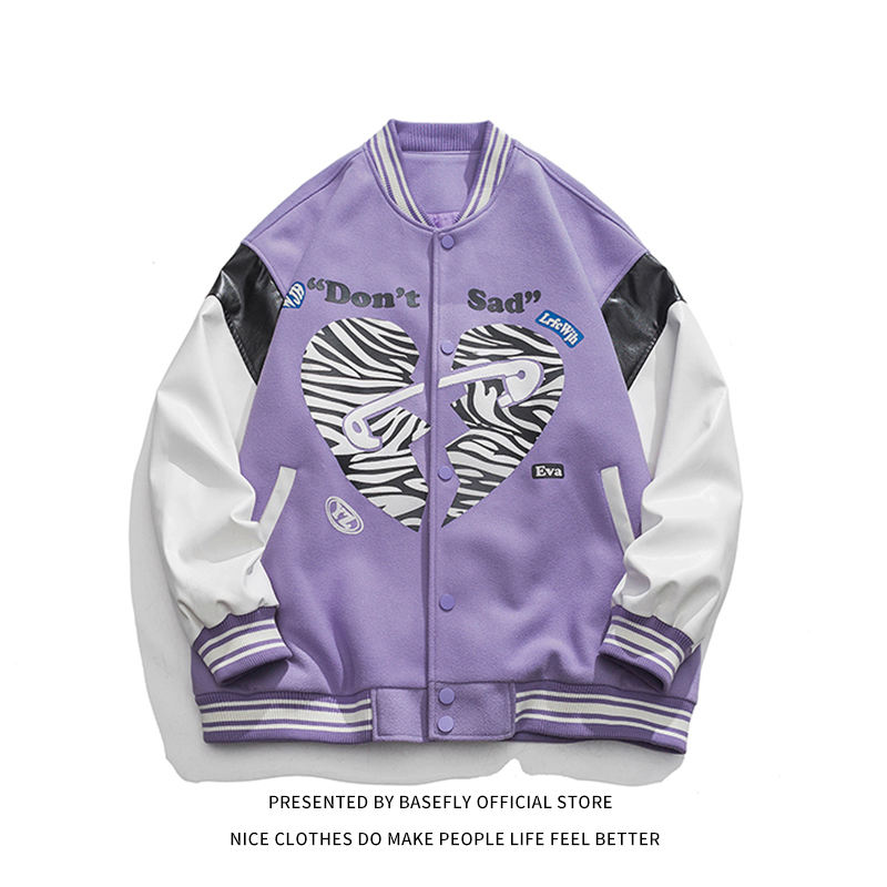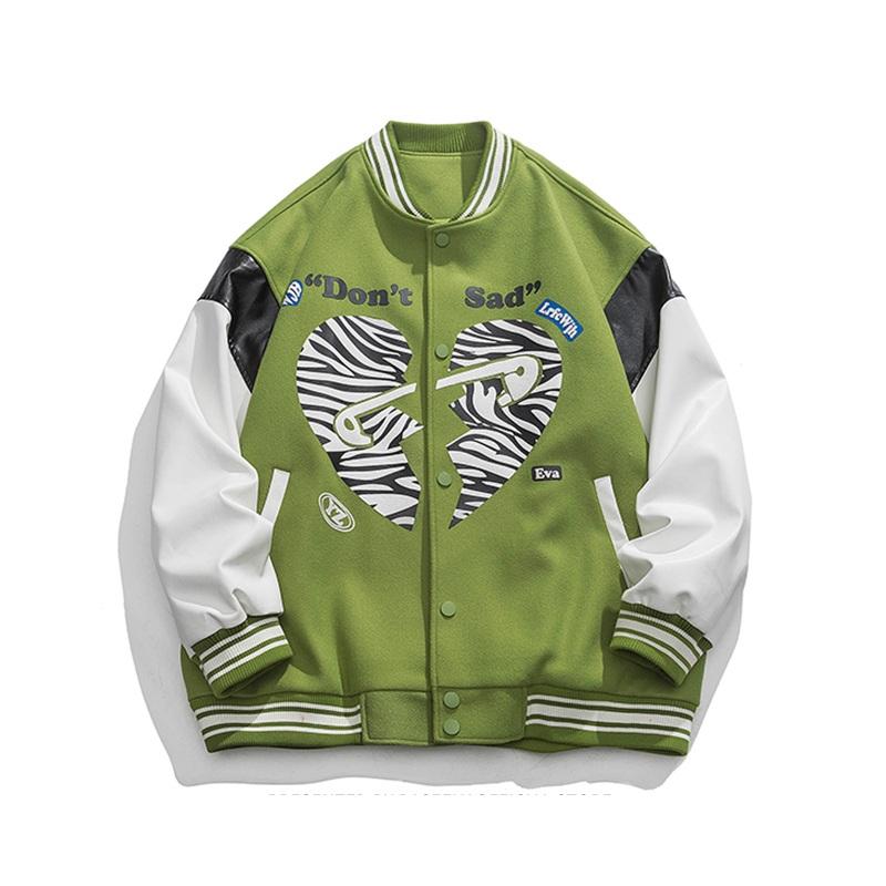 แจ็กเก็ตผ้ากำมะหยี่สำหรับผู้ชายแจ็คเก็ตบอมเบอร์เลตเทอร์แมนแขนเสื้อหนังปักลายสำหรับใส่ไปเรียนเบสบอล
