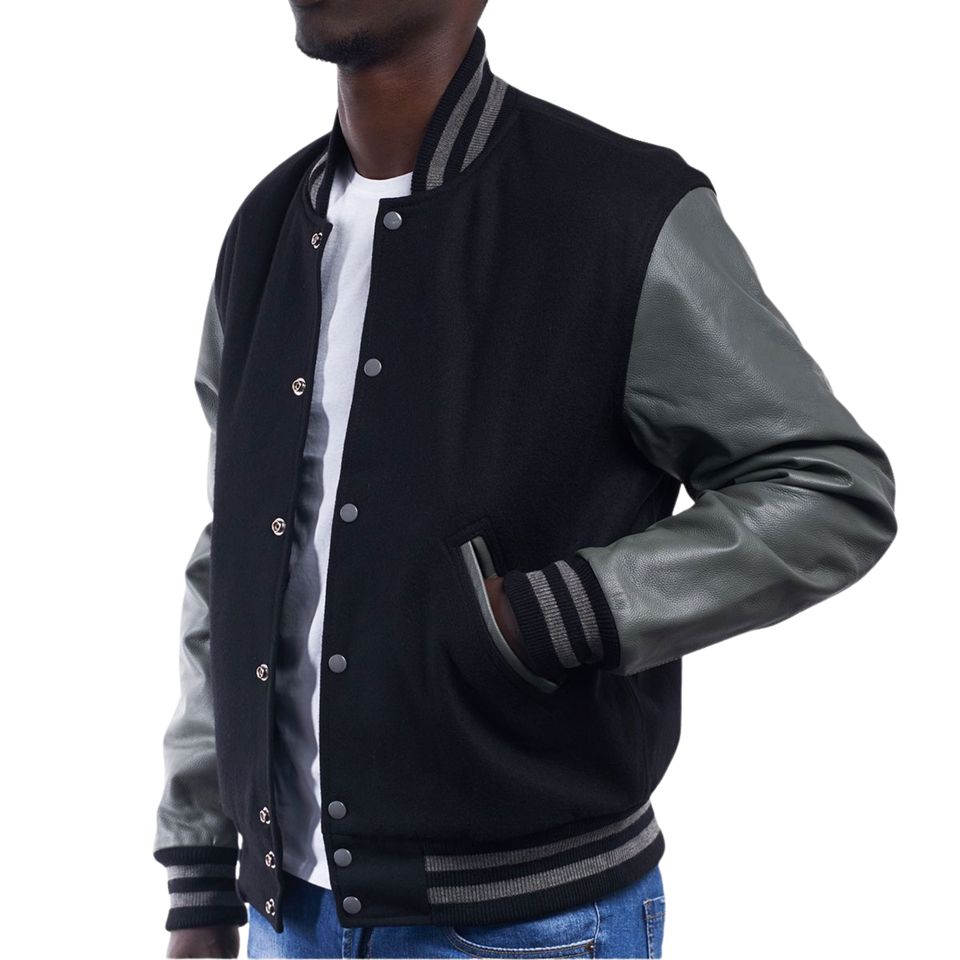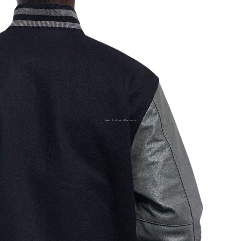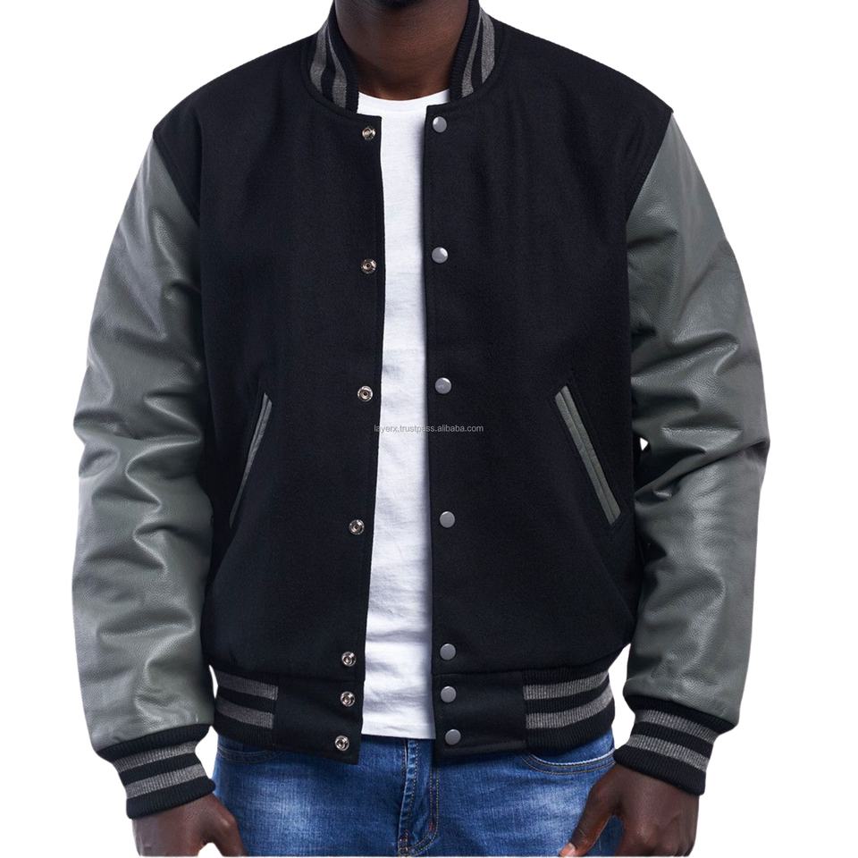 เสื้อแจ็คเก็ตวาร์ซิตี้สำหรับผู้ชาย แขนหนังผสมขนสัตว์ ปิดด้วยซิป ผลิตจากวัสดุรักษ์โลก ตกแต่งด้วยผ้าปะติดปะต่อ สไตล์บอมเบอร์โค้ท ชุดยูนิฟอร์มทีมบาสเกตบอล
