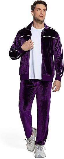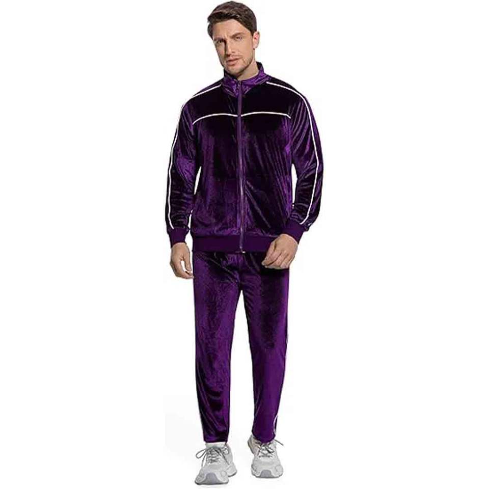 ชุดวอร์มกำมะหยี่ผู้ชายแบบ 2 ชิ้น ชุดออกกำลังกายแบบซิปเต็มตัว พร้อมเสื้อแจ็คเก็ตและกางเกงวอร์ม