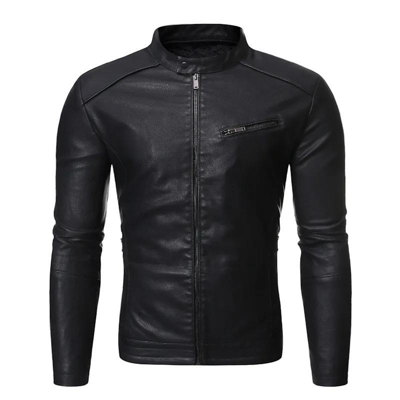 เสื้อโค้ทหนังผู้ชายอเนกประสงค์ ซักได้ คอตั้ง แจ็คเก็ตแสนสบายสำหรับผู้ชาย