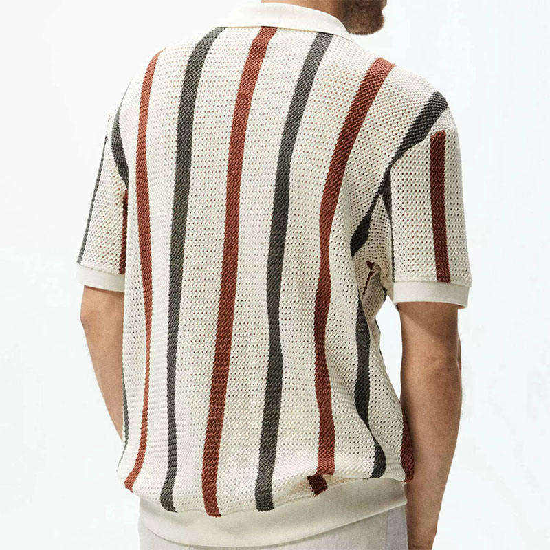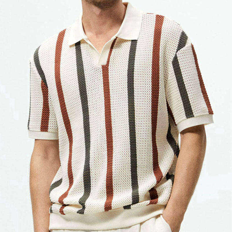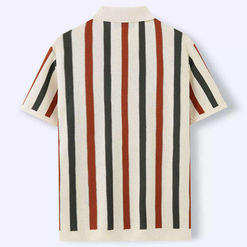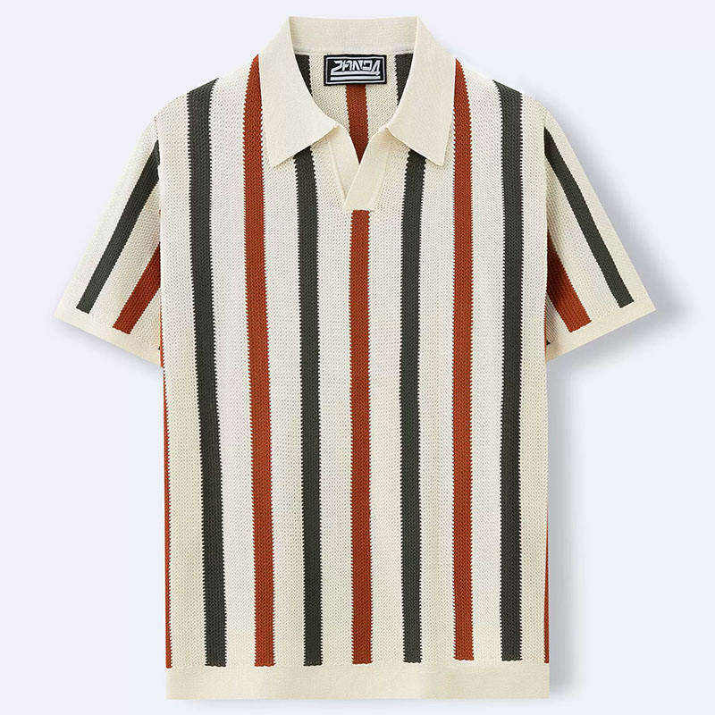 เสื้อโปโลถักลายทางแนวตั้งสำหรับผู้ชาย รุ่น 2026 สไตล์เรโทร ซัมเมอร์ สีเทอร์ราคอตต้าและชาร์โคล ทรงหลวม ใส่สบาย HD
