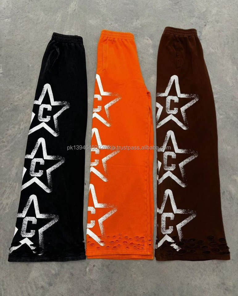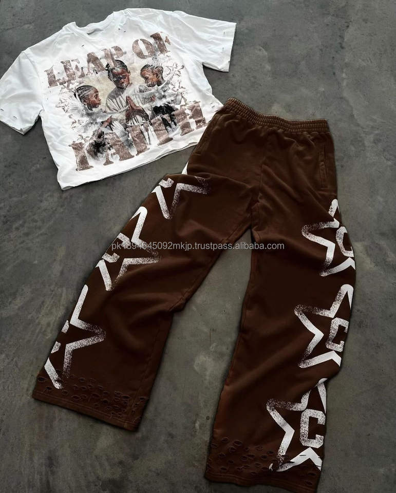 ชุดเสื้อยืดและกางเกงวอร์มผ้าฝ้าย100% วินเทจสำหรับผู้ชายชุดครอปซักด้วยกรดพิมพ์ลายสกรีนคุณภาพสูง