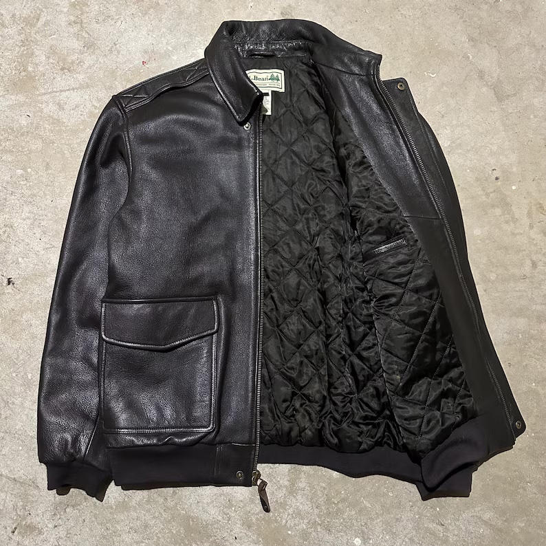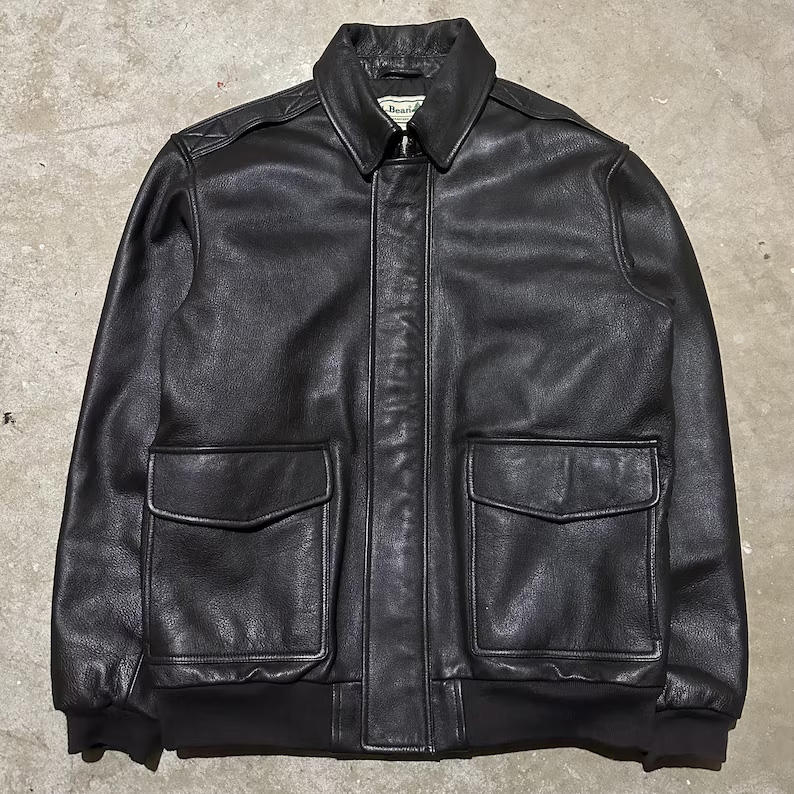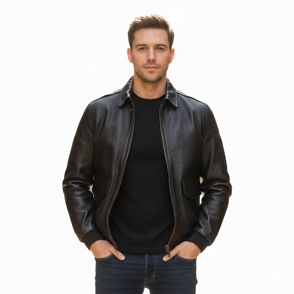 แจ็คเก็ตบอมเบอร์หนังแพะสีดำสไตล์วินเทจสำหรับผู้ชาย ตัดเย็บพอดีตัว ดีไซน์ทันสมัยและพรีเมียม แฟชั่นแจ็คเก็ตหนัง