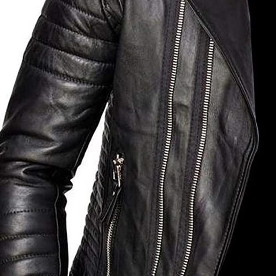 แจ็กเก็ตหนังสำหรับนักขี่จักรยานชายวินเทจสีดำมีซิปแต่งรายละเอียด