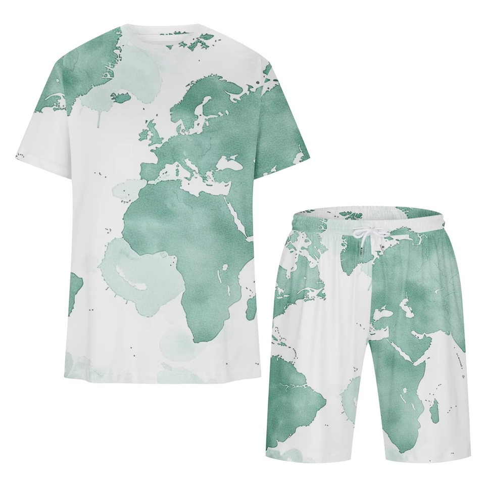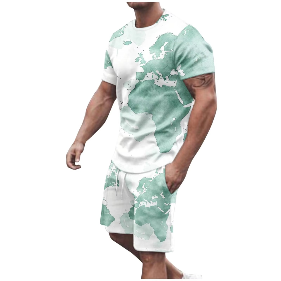 ชุดกีฬาลำลองวินเทจสำหรับผู้ชาย เสื้อยืดแขนสั้นและกางเกงขาสั้นแบบรักษ์โลกสำหรับฤดูร้อน เสื้อผ้าสบายๆสำหรับนักเรียน