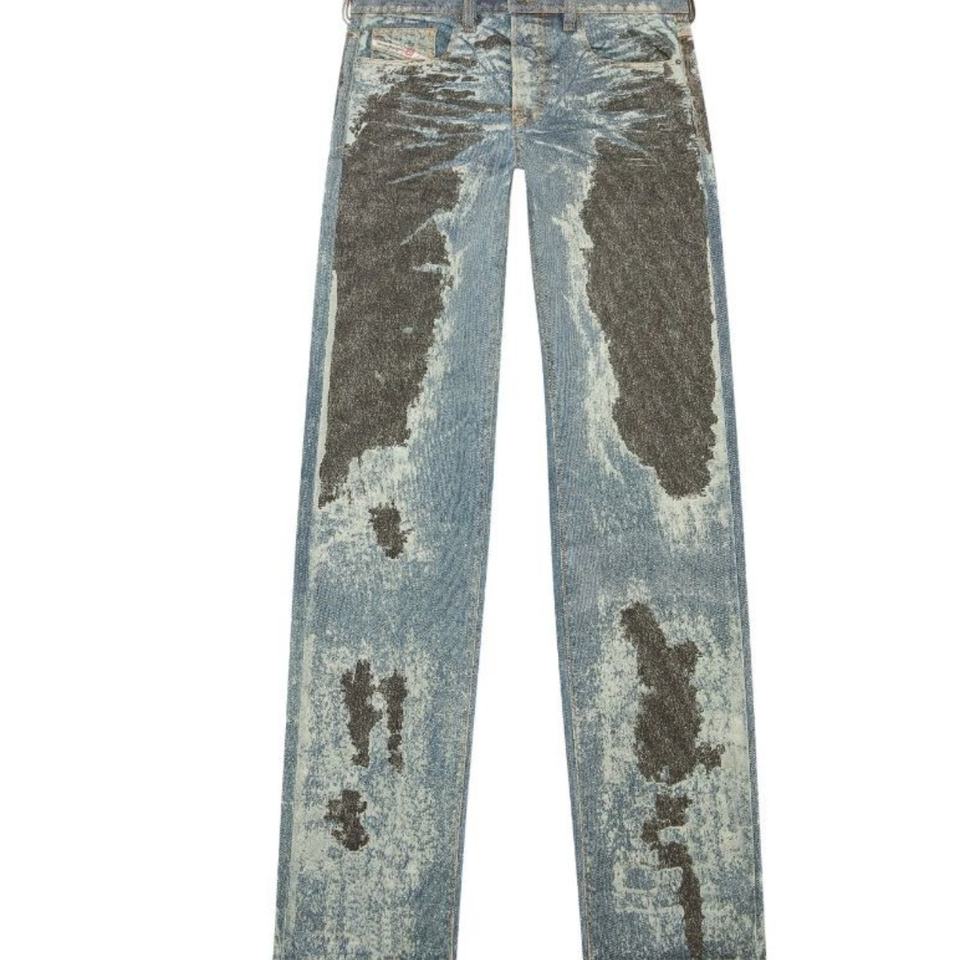 กางเกงยีนส์เดนิมสีน้ำเงินสไตล์วินเทจสำหรับผู้ชาย แต่งรอยขาดและดีเทลปะติดสีเข้ม เหมาะสำหรับสไตล์ Y2K แคชชวล ฮิปฮอป และสตรีทแฟชั่น