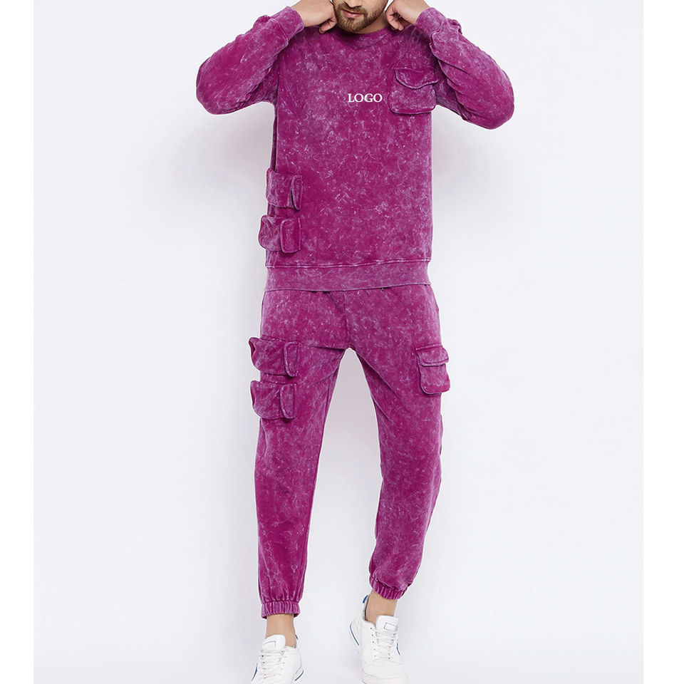 ชุดวอร์มฮิปฮอปวินเทจของผู้ชายใหม่เสื้อสเวตเชิ้ตคอกลมพร้อมกล่องกระเป๋ากางเกงบานสำหรับฤดูหนาว