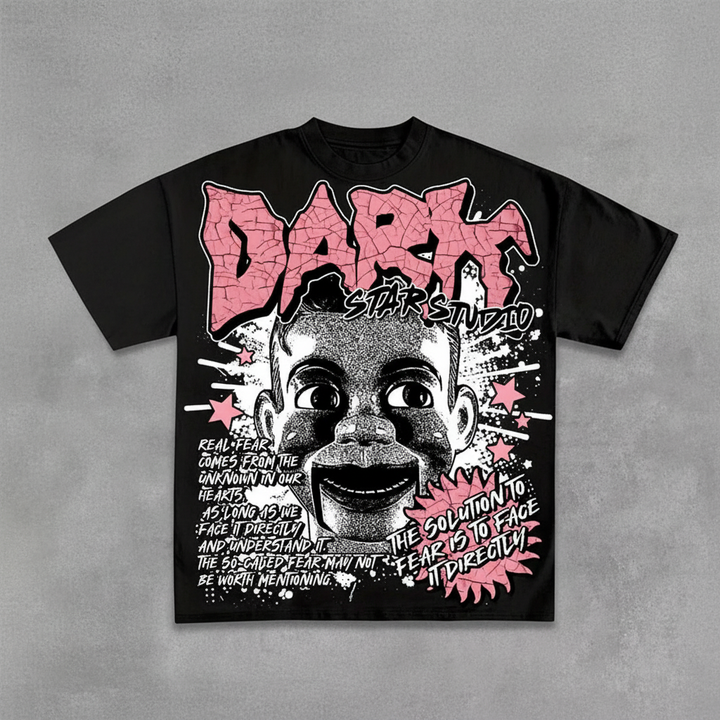 เสื้อยืดผ้าฝ้ายกราฟิกสยองขวัญแนววินเทจของผู้ชายเสื้อยืดลำลองคอกลมลายสตรีทแวร์แนวสตรีท Y2K สีดำดวงดาวสีเข้ม