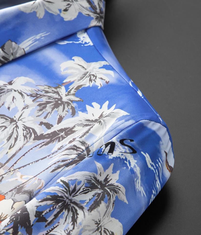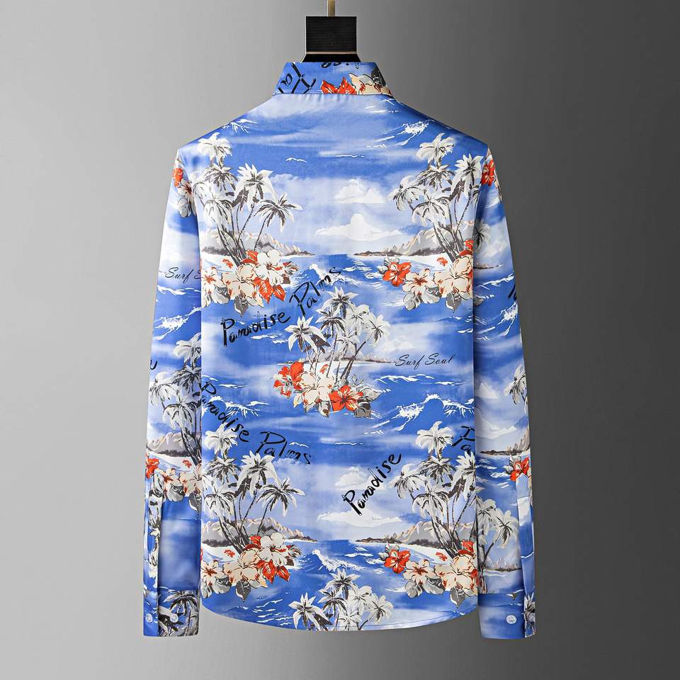 เสื้อเชิ้ตแขนยาวสไตล์วินเทจสำหรับผู้ชาย ลายต้นปาล์มเขตร้อนและดอกไม้ พิมพ์ลายข้อความ 'Paradise' ดีไซน์ ODM สไตล์ลำลองสำหรับฤดูใบไม้ผลิ