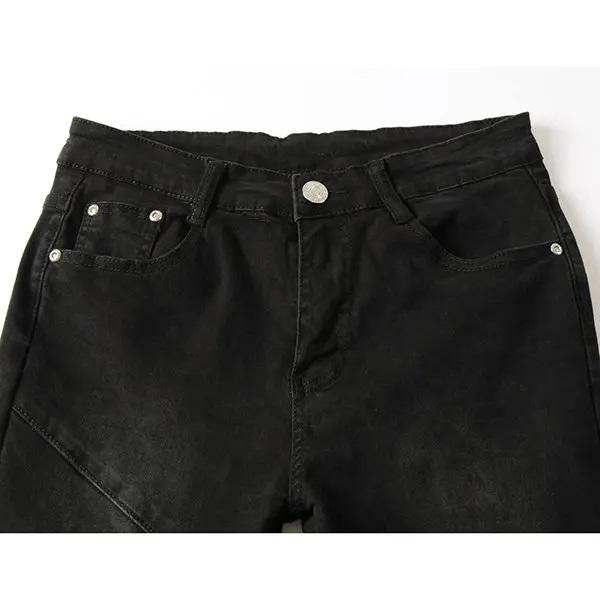 กางเกงยีนส์ลายลิงวินเทจของผู้ชายซักแบบไม่เครียดผ้าอีลาสเทนผ้าทอลแบบสลิมฟิตเอวกลางประดับพลอยเทียมขายส่ง