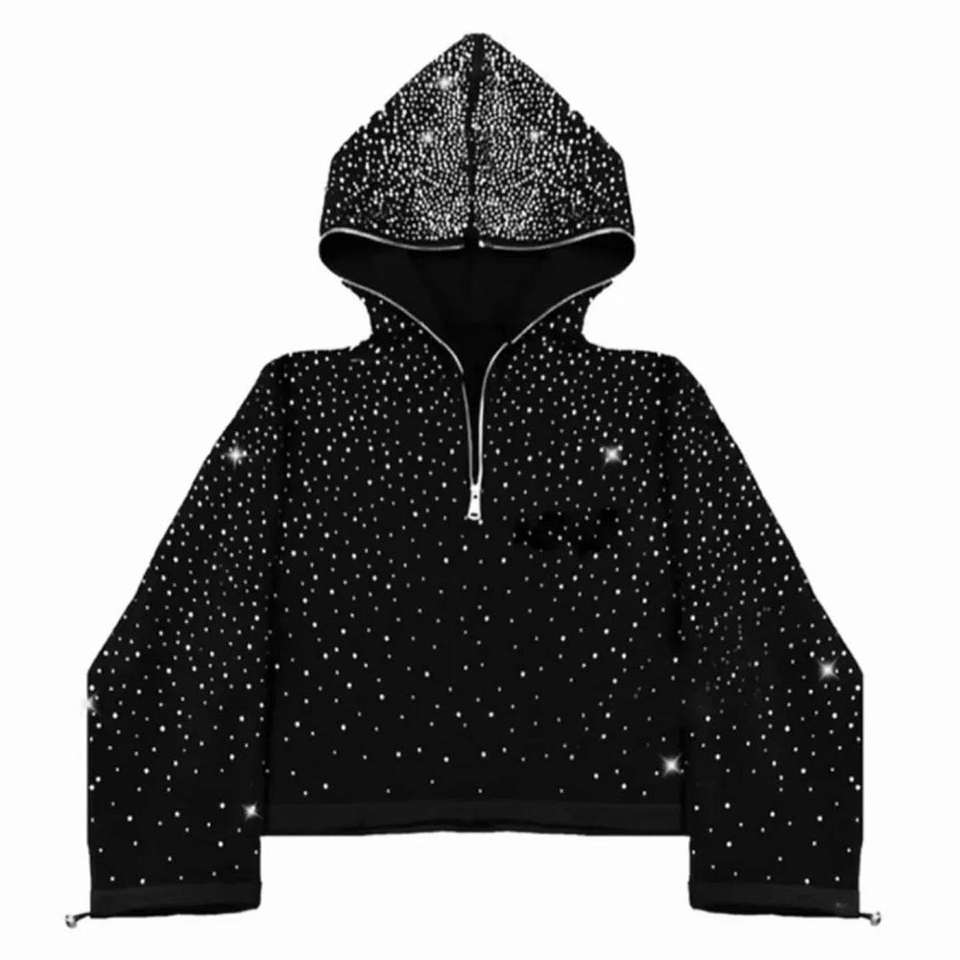 ชุดวอร์มแบบมีฮู้ดสไตล์วินเทจยูนิเซ็กซ์ ล้างสีแบบแอซิด ตกแต่งด้วยคริสตัล ผ้าฝ้ายเฟรนช์เทอร์รี่ สีพื้น เป็นมิตรกับสิ่งแวดล้อม สตรีทแวร์ สามารถปรับแต่งได้