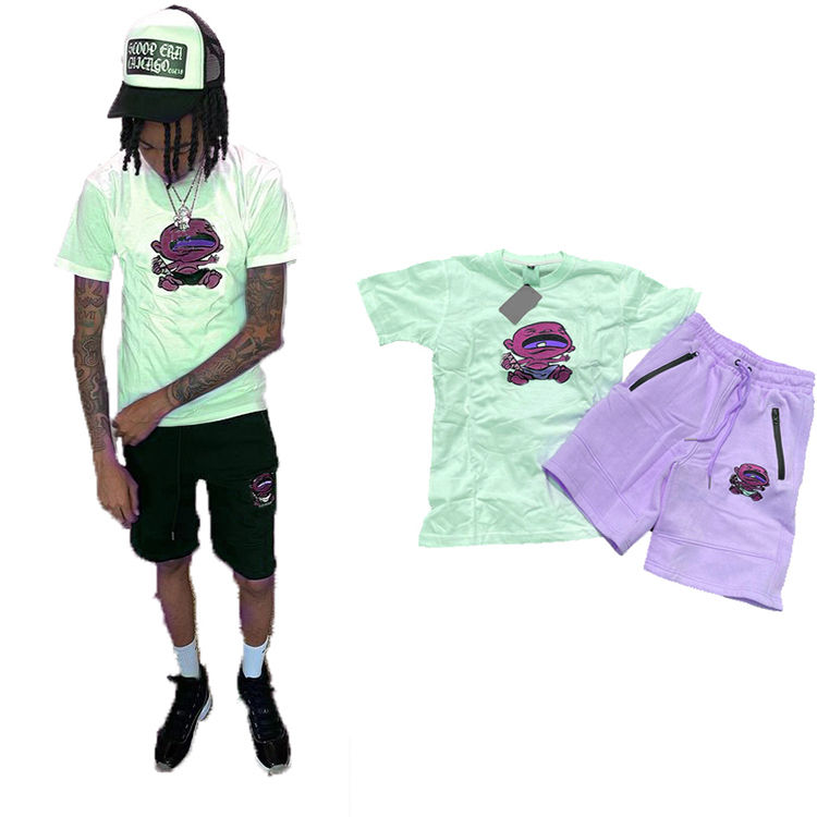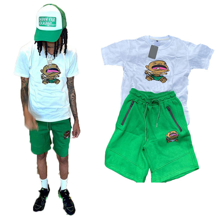 ชุดวอร์มวินเทจสไตล์สตรีทแวร์ผู้ชาย เสื้อโอเวอร์ไซส์และกางเกงขาสั้น ชุดเซ็ตสองชิ้น เสื้อผ้าฤดูใบไม้ร่วง ผ้าฝ้าย 100% แห้งเร็ว