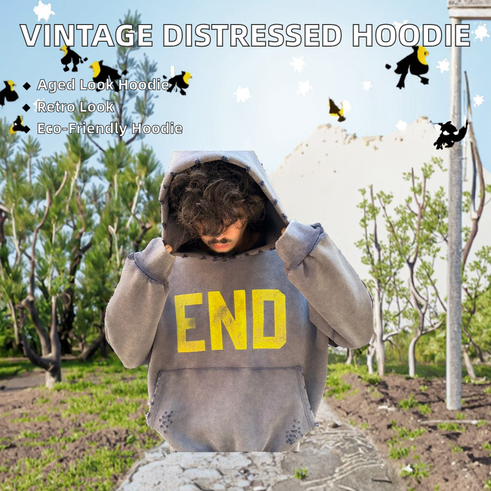 Men's Vintage Wash Distress Hoodie Pullover Custom Heavyweight French Terry 100% Cotton Oversized Fit Sweatshirts