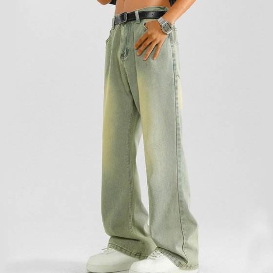 กางเกงยีนส์ทรงแบ็กกี้วินเทจของผู้ชายกางเกงยีนส์ทรงหลวมใส่สบายผ้ายืดแบบคลาสสิก
