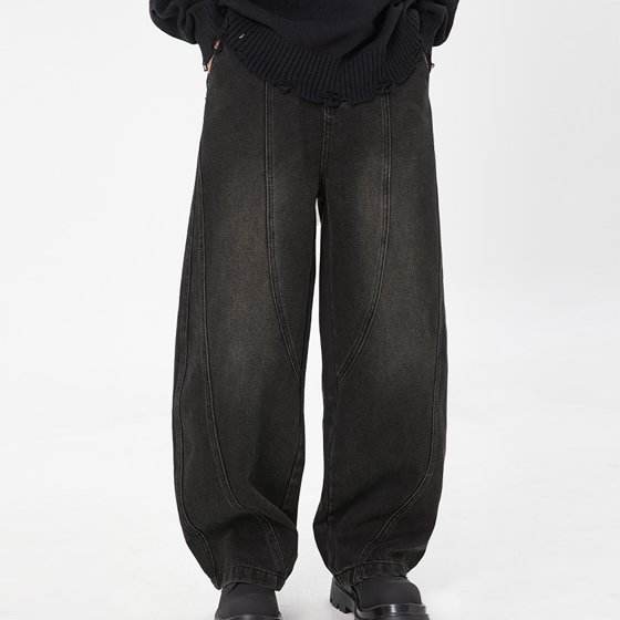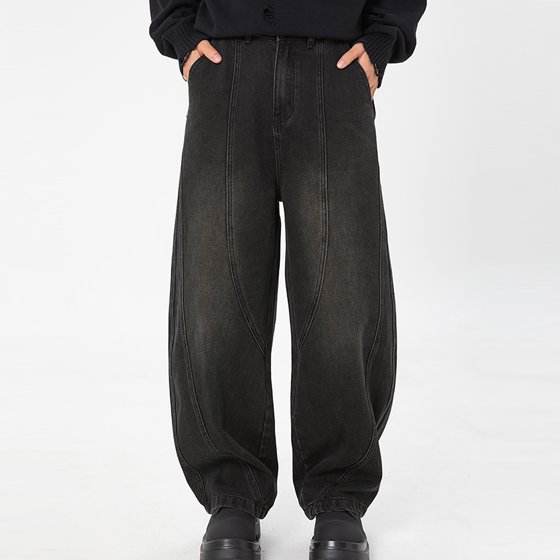 กางเกงยีนส์ทรงแบ็กกี้วินเทจของผู้ชายกางเกงยีนส์ทรงหลวมใส่สบายผ้ายืดแบบคลาสสิก
