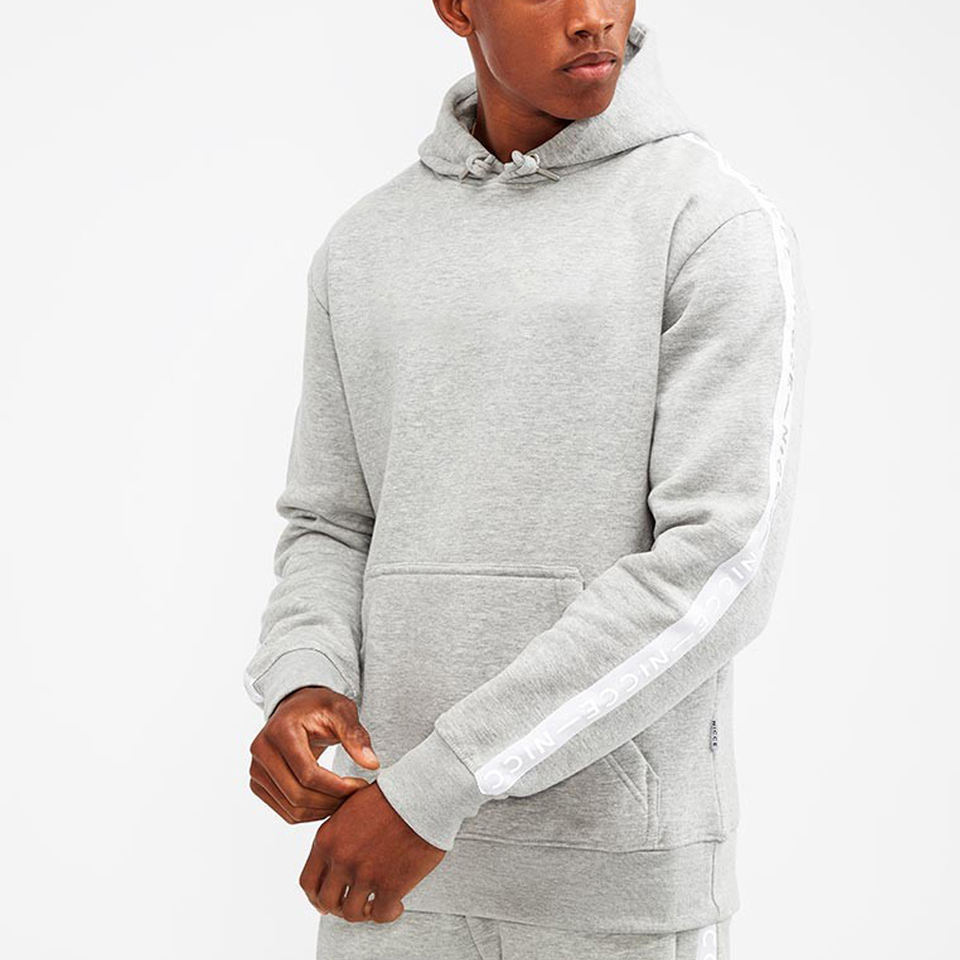 ชุดกีฬาแบบลำลองสำหรับผู้ชายมีฮู้ดและกางเกงผ้าโพลีเอสเตอร์100% เป็นมิตรต่อสิ่งแวดล้อมออกแบบโลโก้ได้ตามต้องการสำหรับฤดูหนาว