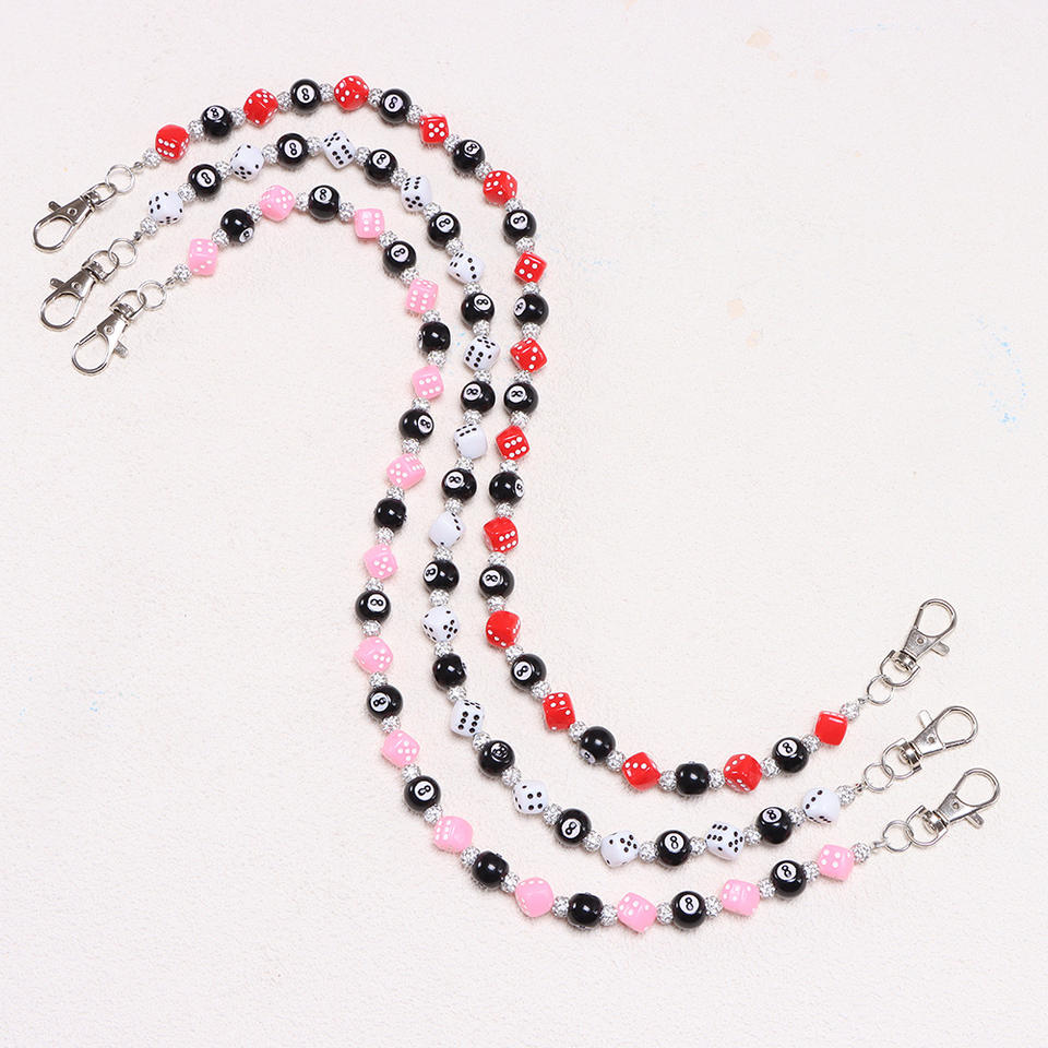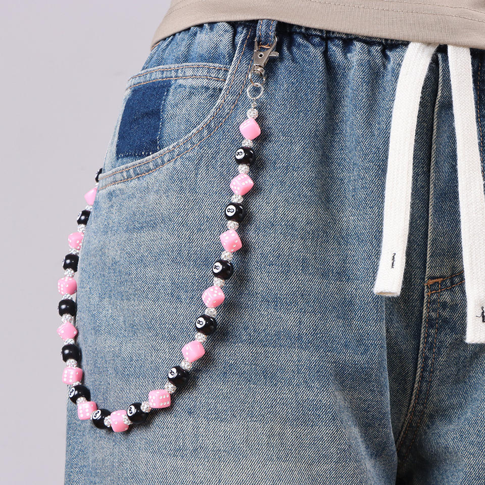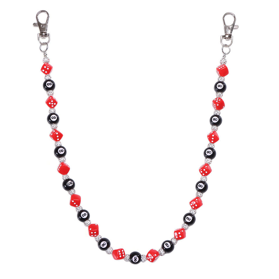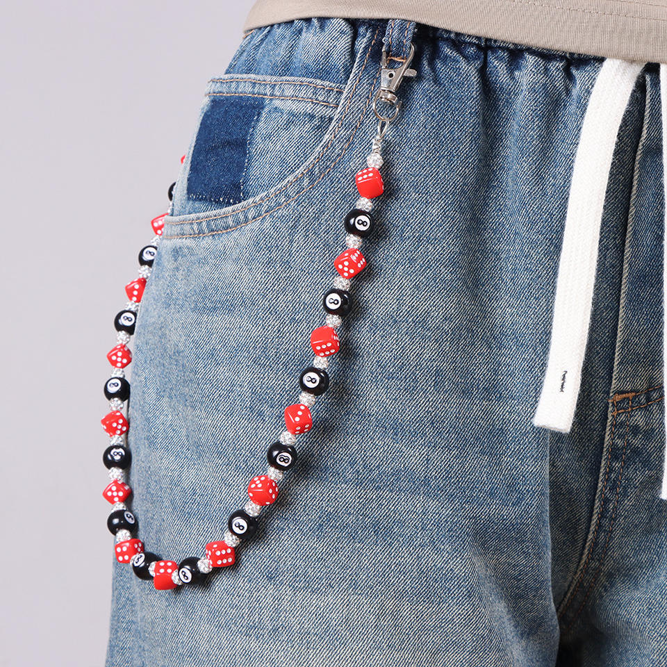 โซ่คาดเอวผู้ชาย ลายลูกเต๋าและลูกบอลแปด ประดับลูกปัด โซ่กระเป๋าผ้ายีนส์ แฟชั่นลำลอง โซ่คล้องตัว โลหะผสมสังกะสี แบบเส้นเดียว