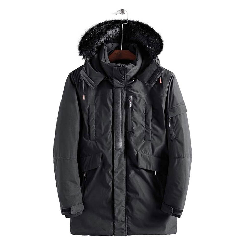 เสื้อแจ็คเก็ตพาร์กาสำหรับผู้ชายแบบกันน้ำ บุขนเทียม พร้อมฮู้ดที่ถอดออกได้ เหมาะสำหรับฤดูหนาว ให้ความอบอุ่นในสภาพอากาศหนาวจัด