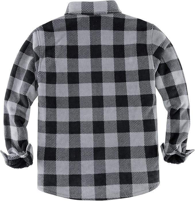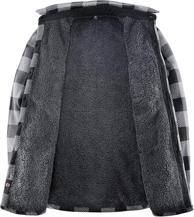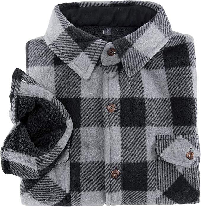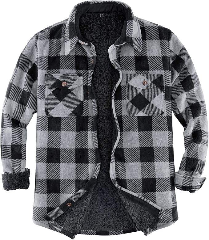 Men's Warm Sherpa Lined Plaid Flannel Shirt Jacket with Turn-Down Collar