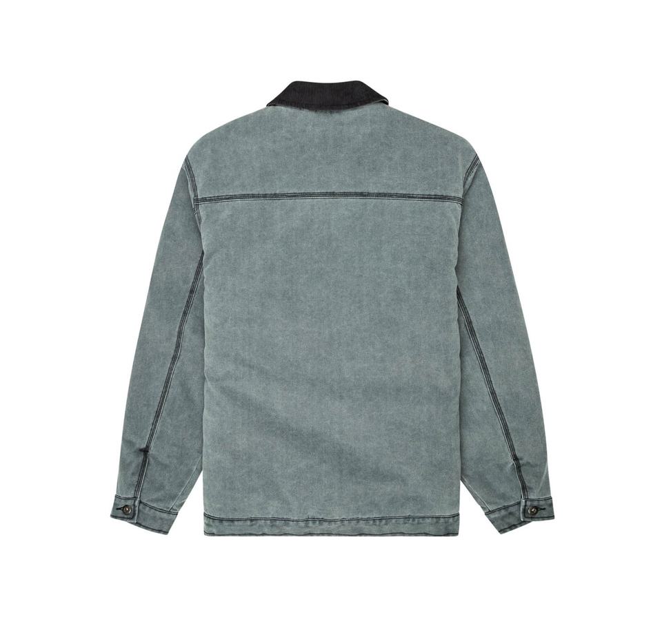 แจ็กเก็ตทำงานผ้ายีนส์ซักได้สำหรับผู้ชายแจ็กเก็ตกันหนาวมีซิปเต็มตัวดีไซน์ลำลองปักกราฟิกสำหรับใส่ทำงานฤดูหนาว
