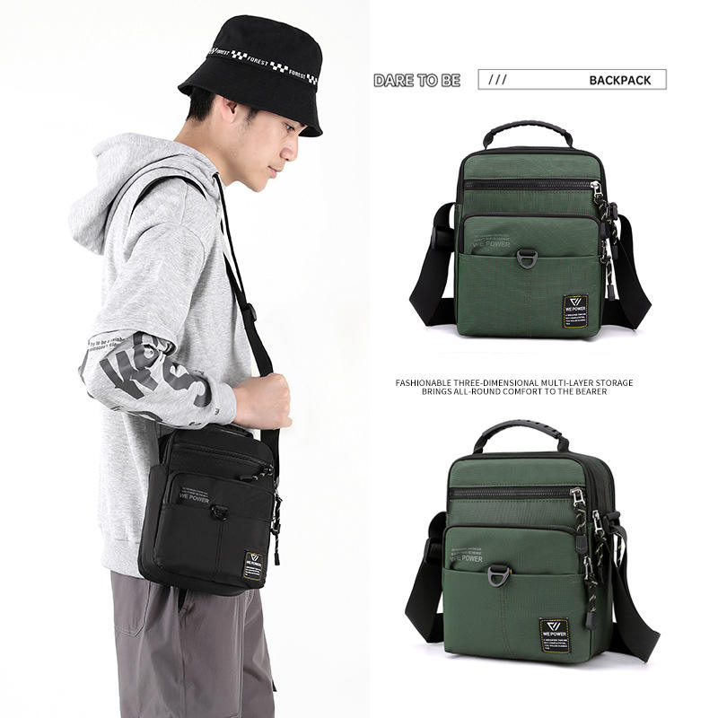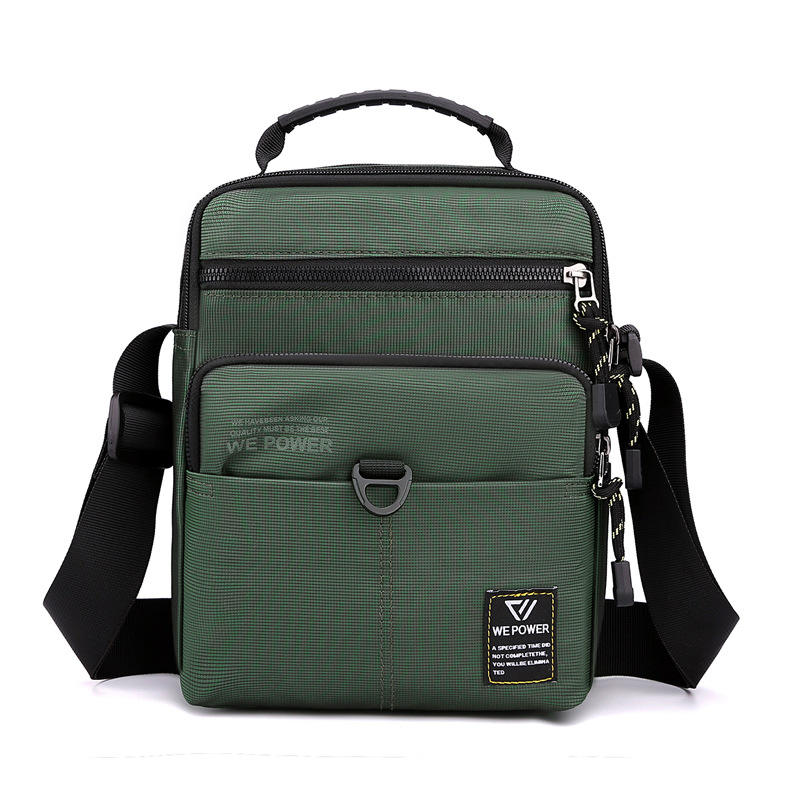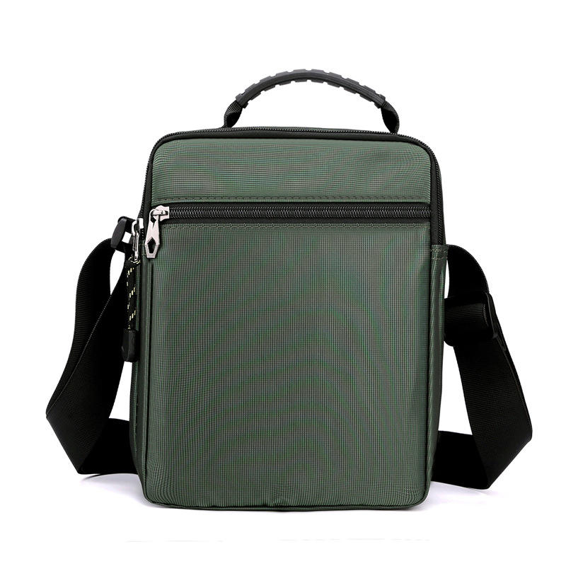 กระเป๋าสะพายไหล่ไนลอนกันน้ำสำหรับผู้ชาย สีเขียวเข้ม สีพื้น กระเป๋าซิปด้านใน กระเป๋าเดินทางพักผ่อน กระเป๋าสะพายข้าง