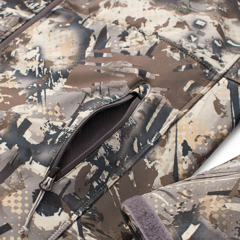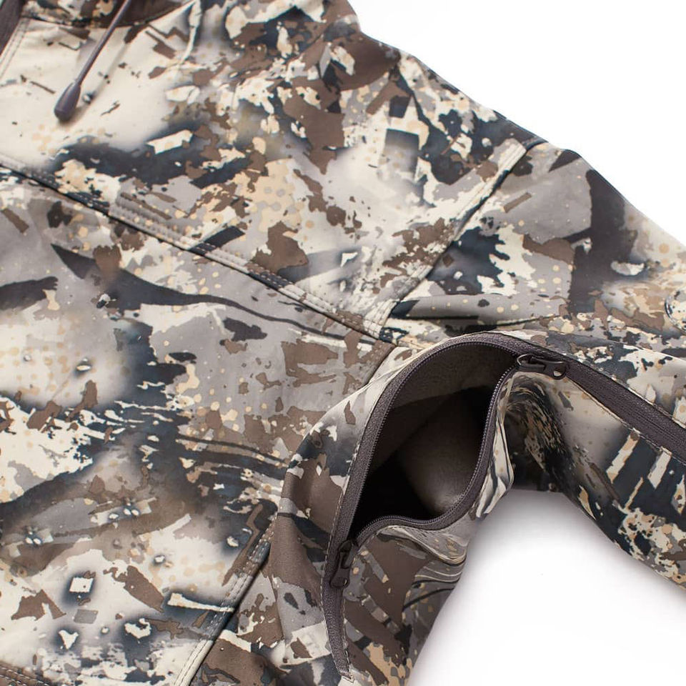 เสื้อแจ็คเก็ตกันน้ำลายพรางสำหรับผู้ชาย เนื้อผ้านุ่ม ทนลม อุ่นสบาย เหมาะสำหรับกิจกรรมกลางแจ้ง พร้อมเทคโนโลยีวัสดุ Bayer สำหรับการล่าสัตว์